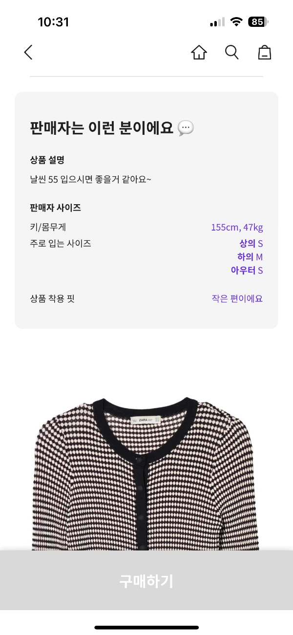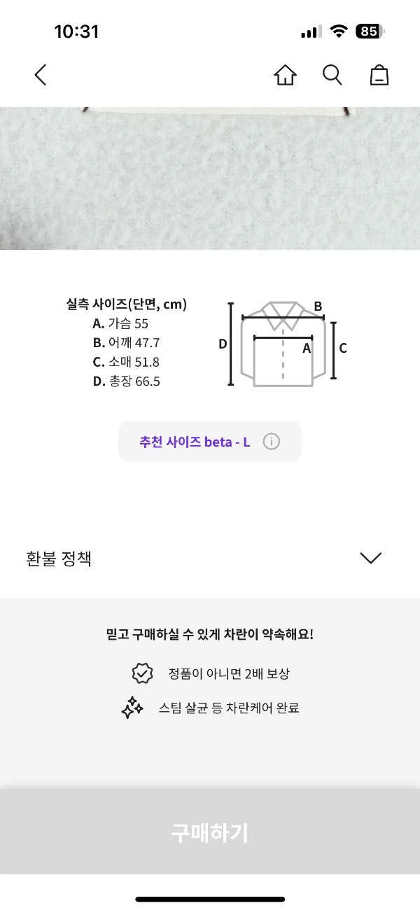 판매자의 키와 몸무게를 노출하고, 판매자의 코멘트가 노출된다. 키와 몸무게를 노출하는 부분은 일반 커머스에서 상품 후기의 모습을 닮아있었고, 판매자의 코멘트에서는 당근에서의 중고거래와 닮아 있다고 느꼈다. 사실상 리커머스는 상품에 대한 후기를 쌓을 수 없고 (판매되는 상품은 단 하나일 것이기 때문에! 같은 상품이라고 하더라도 판매자에 따라 사용감이 매우 다를 것이다.), 후기를 통해 상품을 구매할 확률을 높이는 일반 이커머스의 전략은 차란에서는 행할 수 없을 것이다. 따라서 판매자의 정보를 후기처럼 활용하는 방안을 선택한 것으로 보인다.