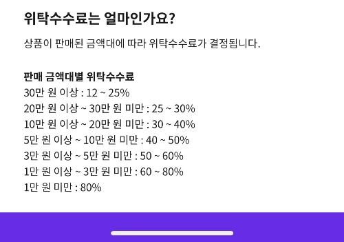 판매자에게 금액적으로는 매력적이지 못한 부분이라 판매될 상품을 늘리고 싶다면 (서비스가 지속되기 위해서는 상품의 수가 지속적으로 공급되어야 한다) 판매 수수료를 점점 낮춰가야할 것 같다.