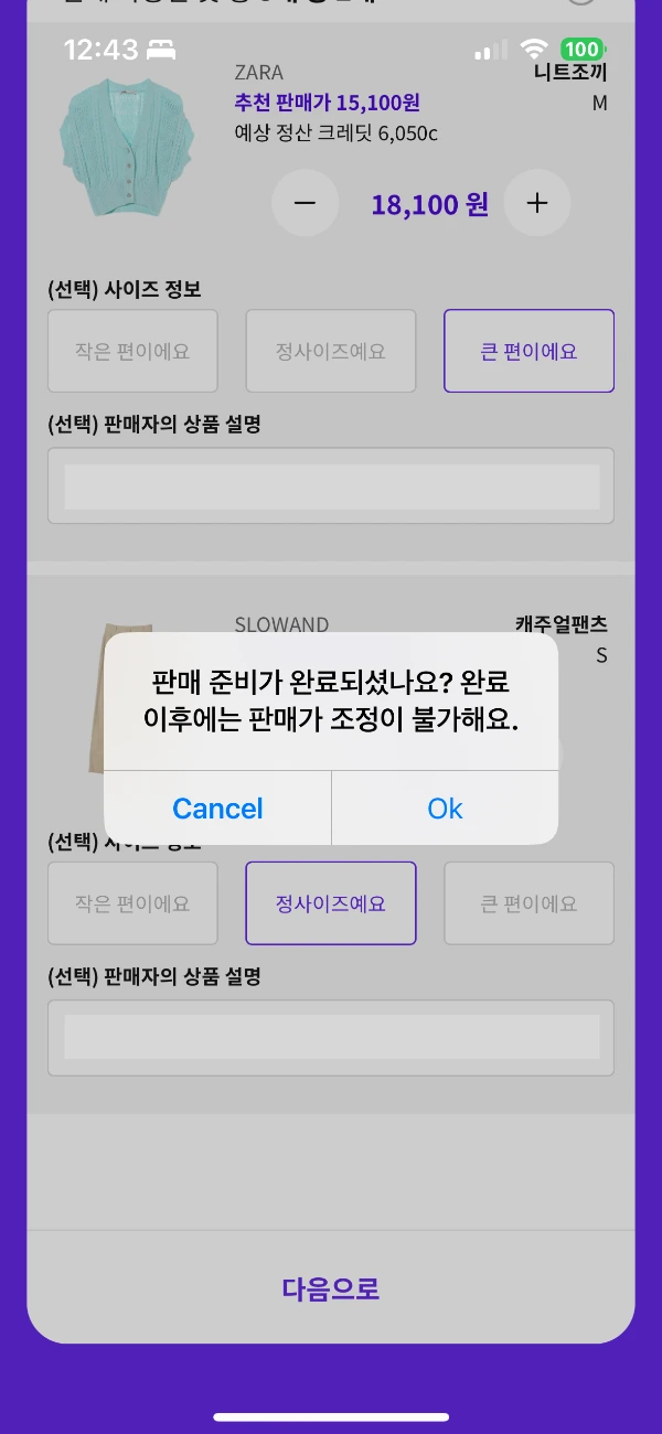 8. 사진 촬영 후 판매할 가격을 설정하여 판매할 수 있다.