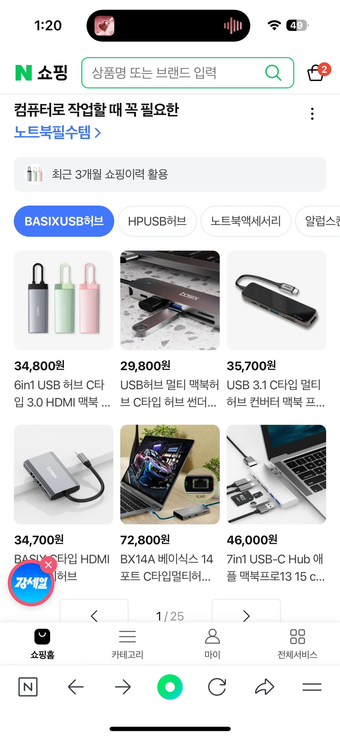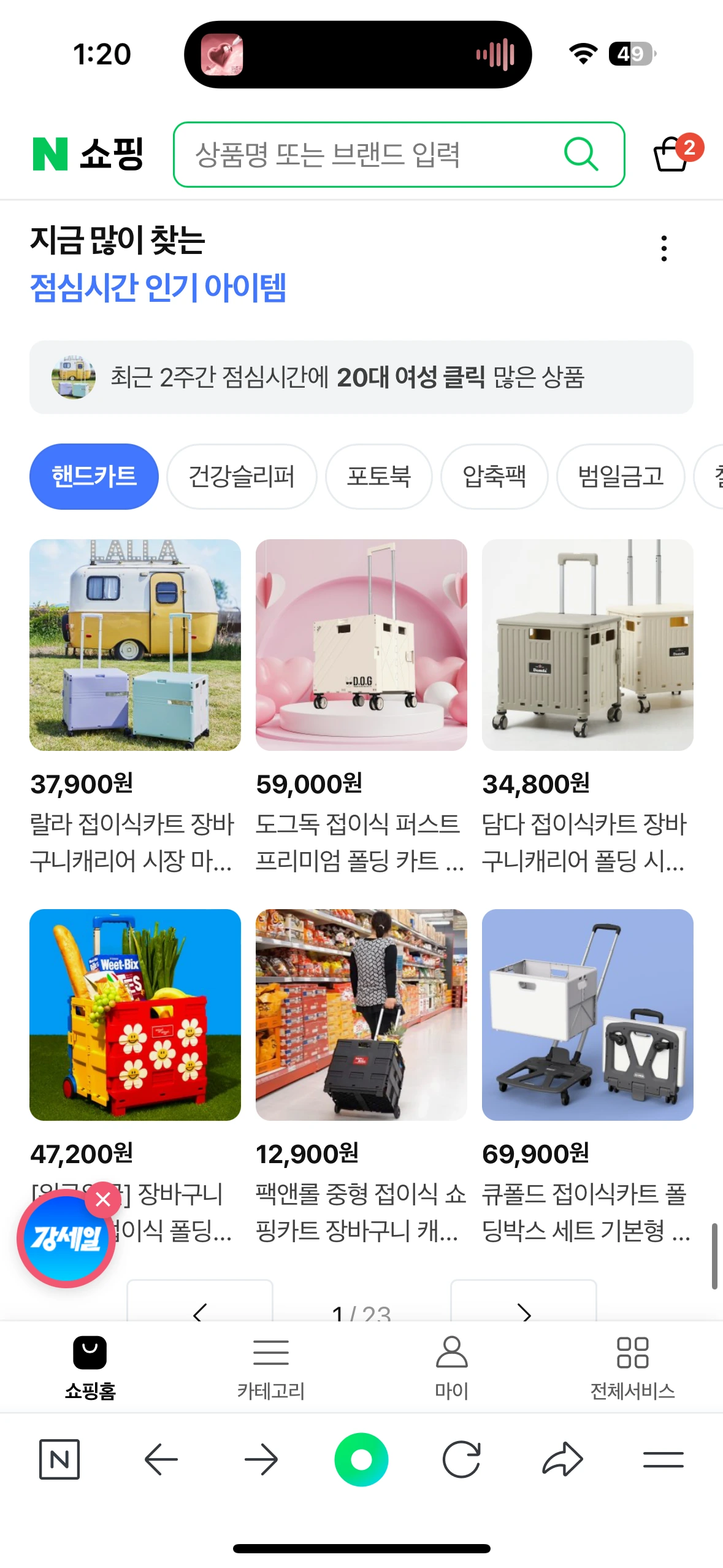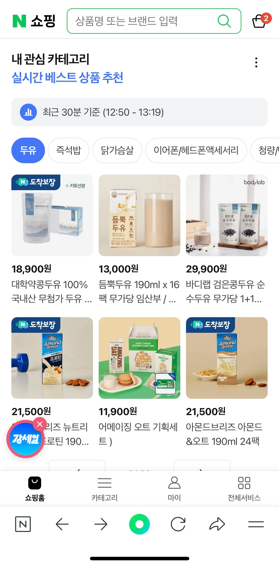 내가 찾아본 카테고리에 대해서 실시간(최근 30분 기준) 베스트 기준으로도 보여주고 있다.