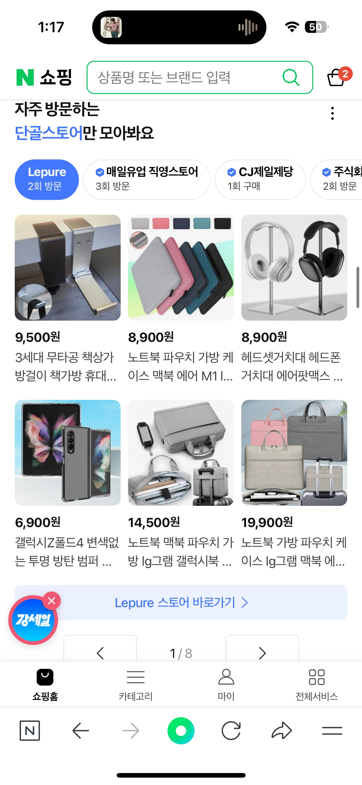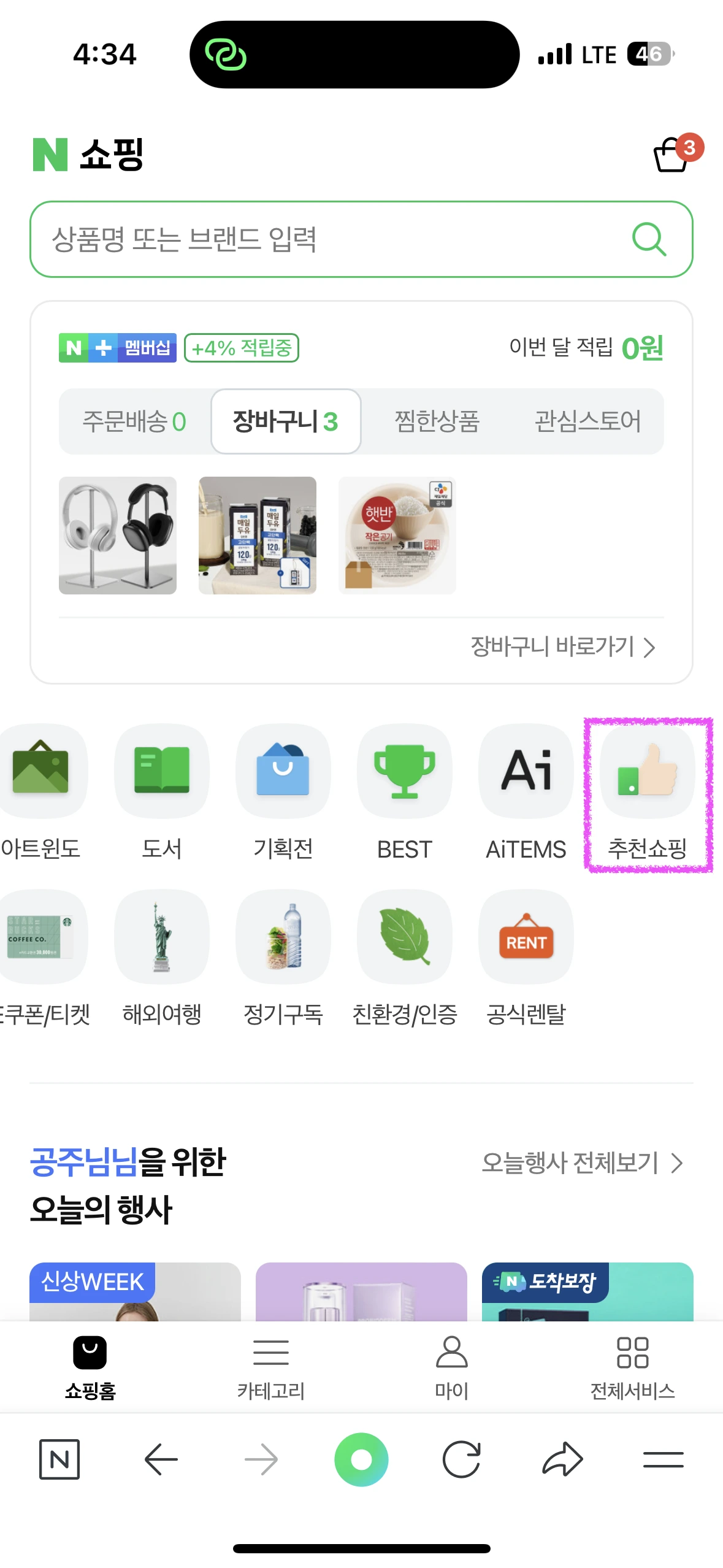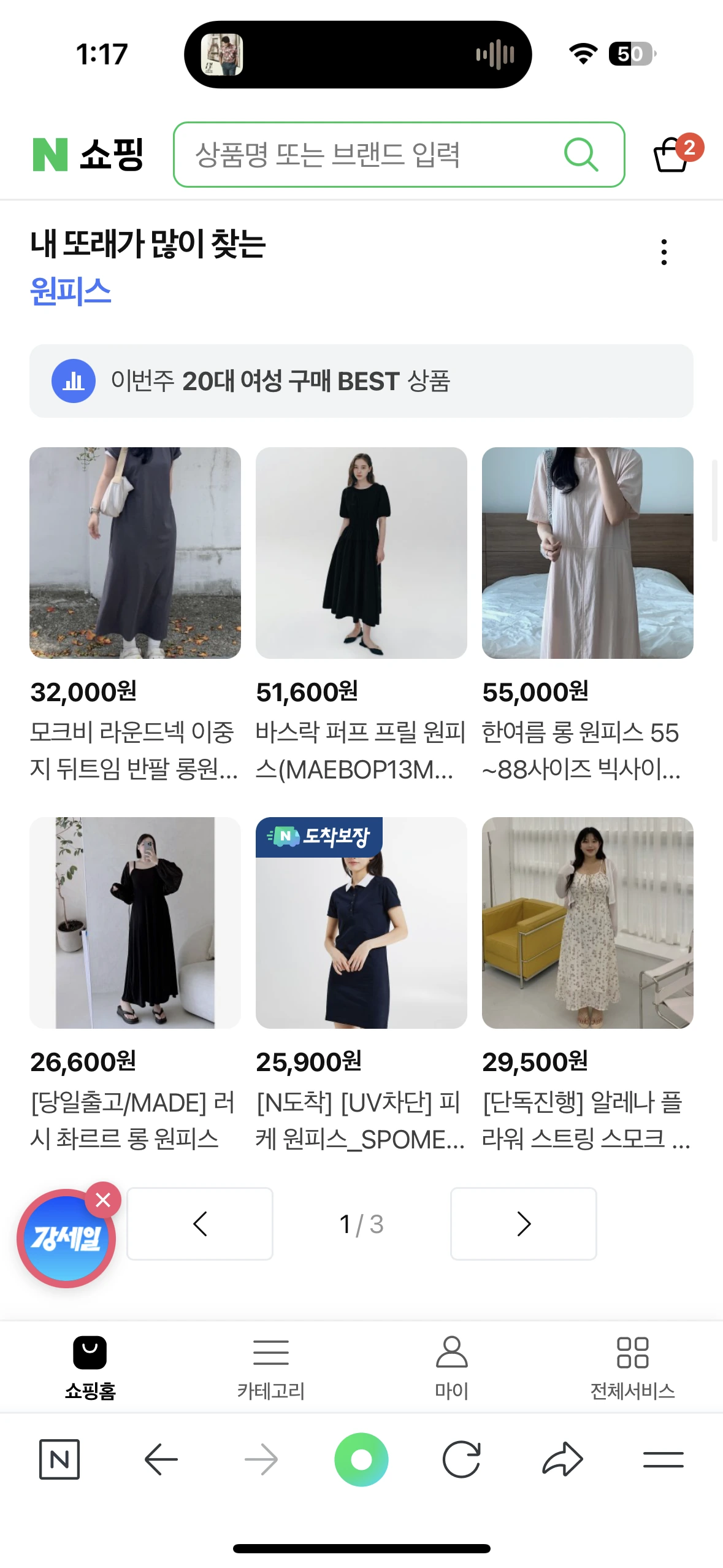 네이버 쇼핑홈의 퀵버튼에는 네이버의 다양한 서비스 (원쁠딜, 도착보장) 들을 보여주는 코너 위주로 구성이 되어 있어 공급자 관점이라는 생각이 들었다. 여러 추천 요소로 '발견'하는 건 쉽게 갖춰두었지만 '탐색'하기에는 어려운 구조로 느껴졌다.
