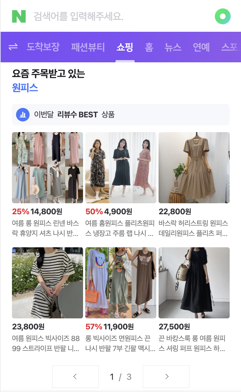 이번 주제로는 다양한 브랜드, 상품을 효율적으로 보여주기 위해 커머스플랫폼에서 사용하는 개인화 추천영역, 방식들에 대해 살펴보고자 한다. 특히 패션부터 식료품까지 정말 다양한 브랜드와 상품군을 커버하고 있어 흥미로운 네이버쇼핑을 분석해보았다.