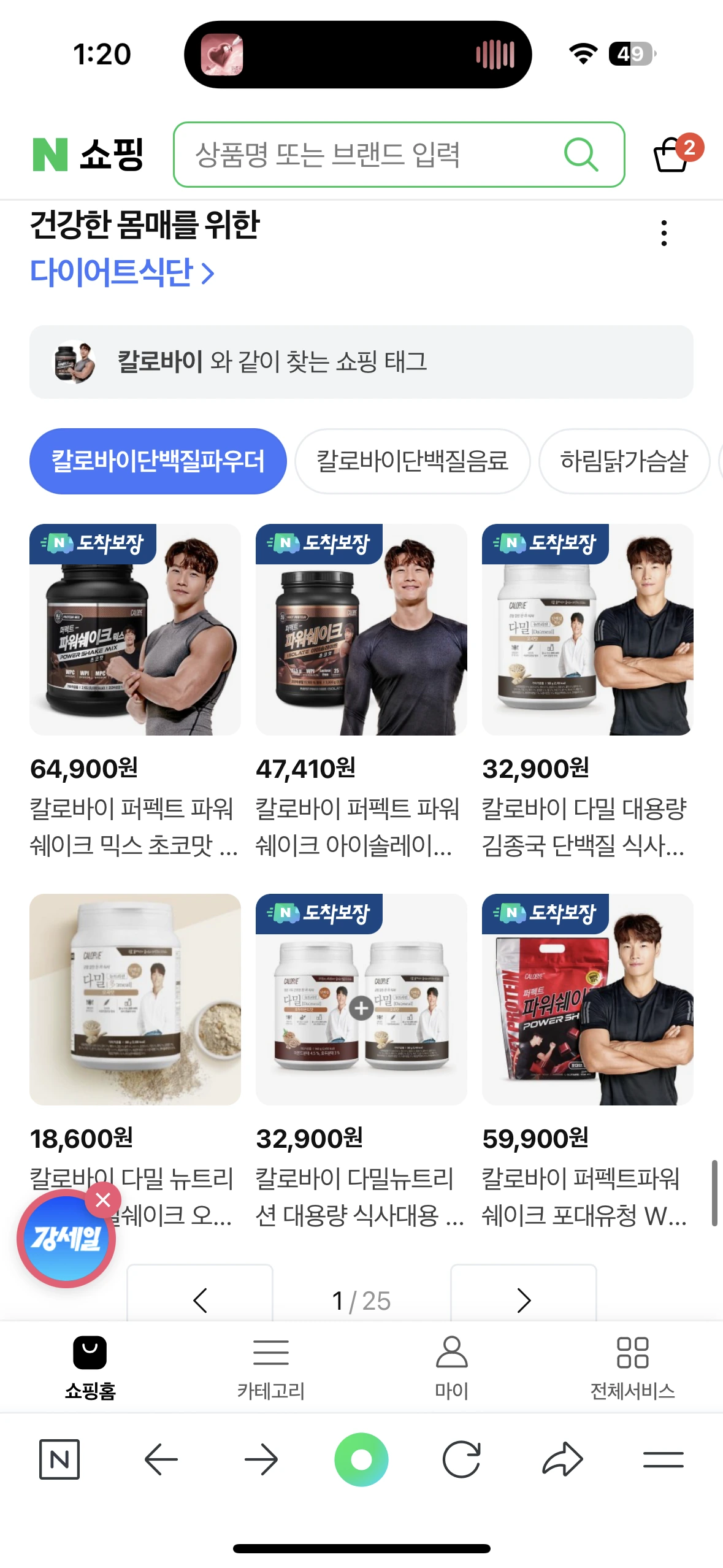 eg. '칼로바이 단백질파우더', '하림닭가슴살'..