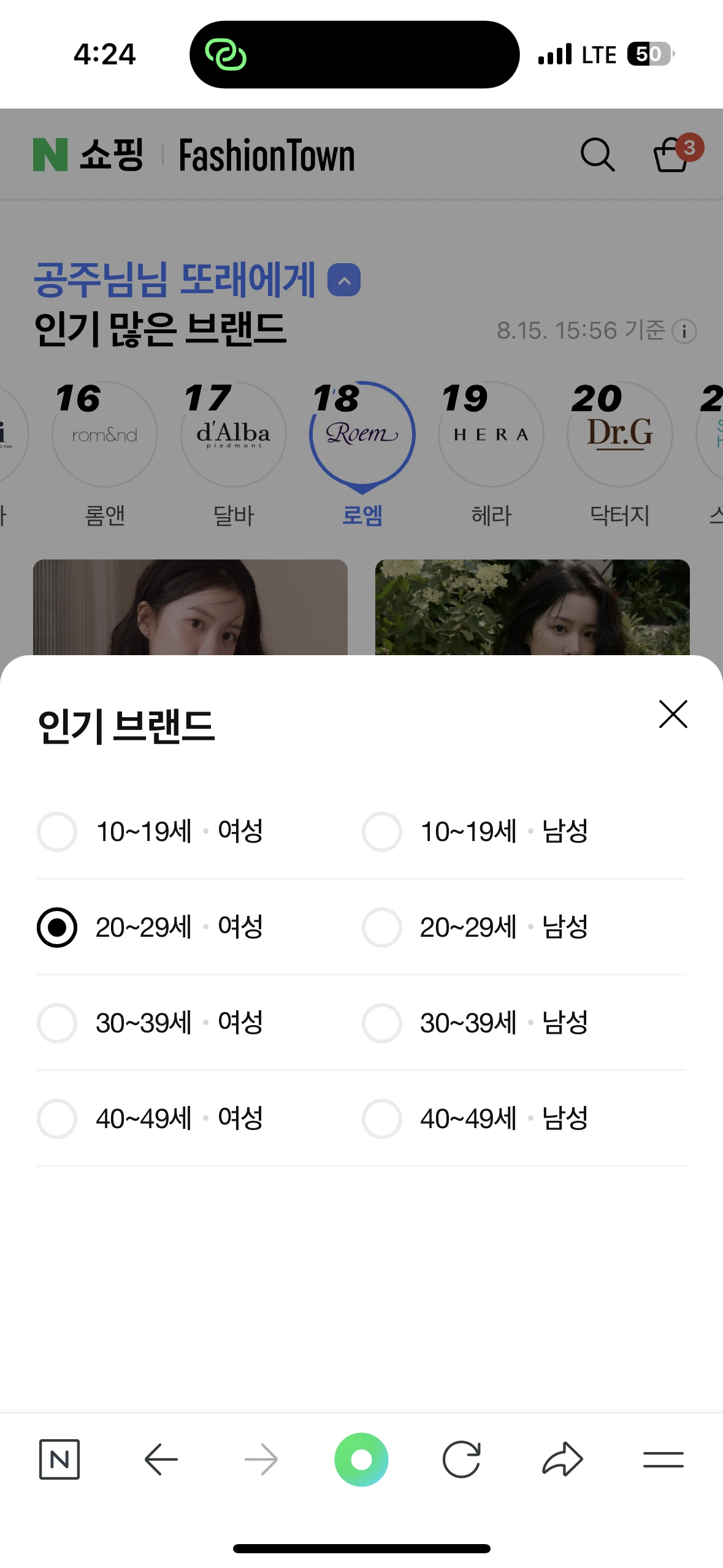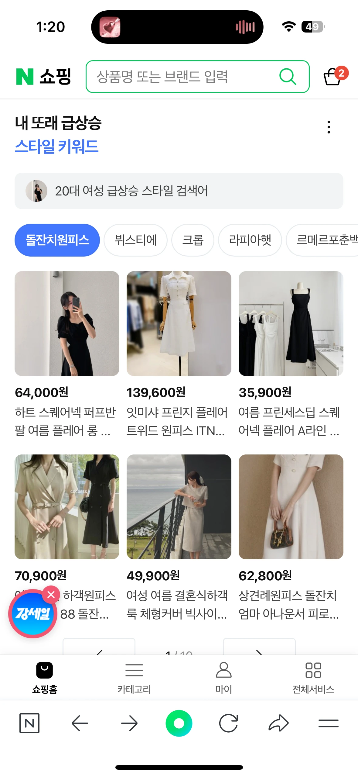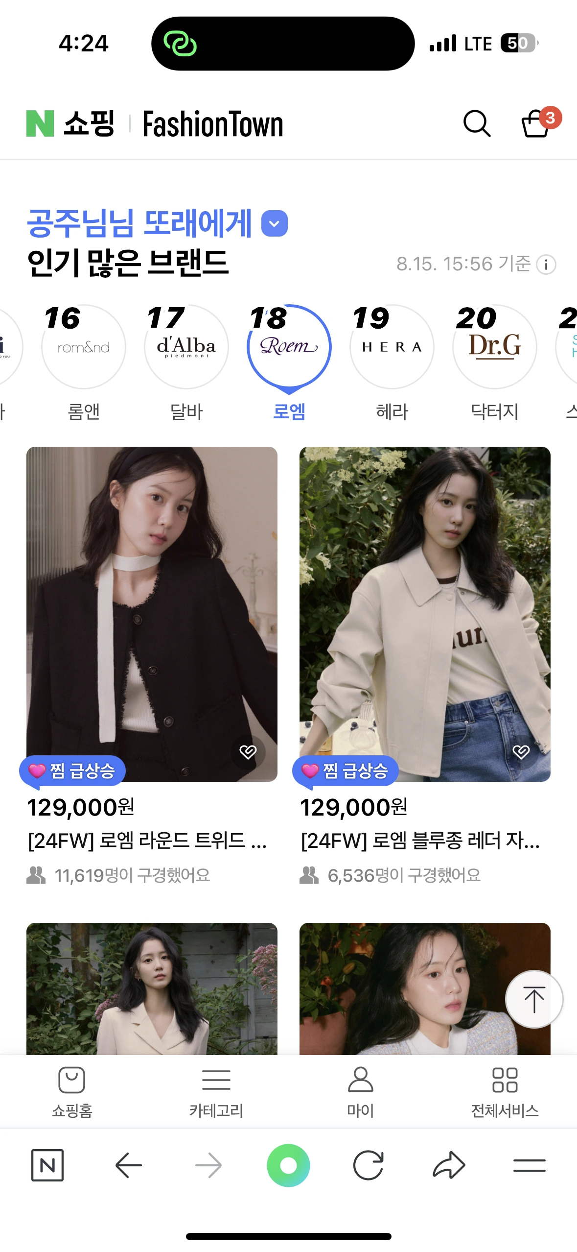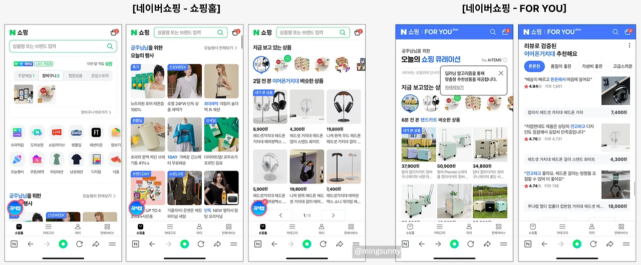 두 페이지에서는 같은 추천 영역을 활용하고 있는 것으로 보여진다. 사소한 차이점이라고 하면, 네이버 쇼핑홈은 나를 20대로 인지하고, FOR YOU는 나를 30대로 인지하고 있다. (우선 30대로 인지하다니 부터 기분이 썩 좋지 않았고, 추천 상품도 마음에 들지 않았다 에헴)
