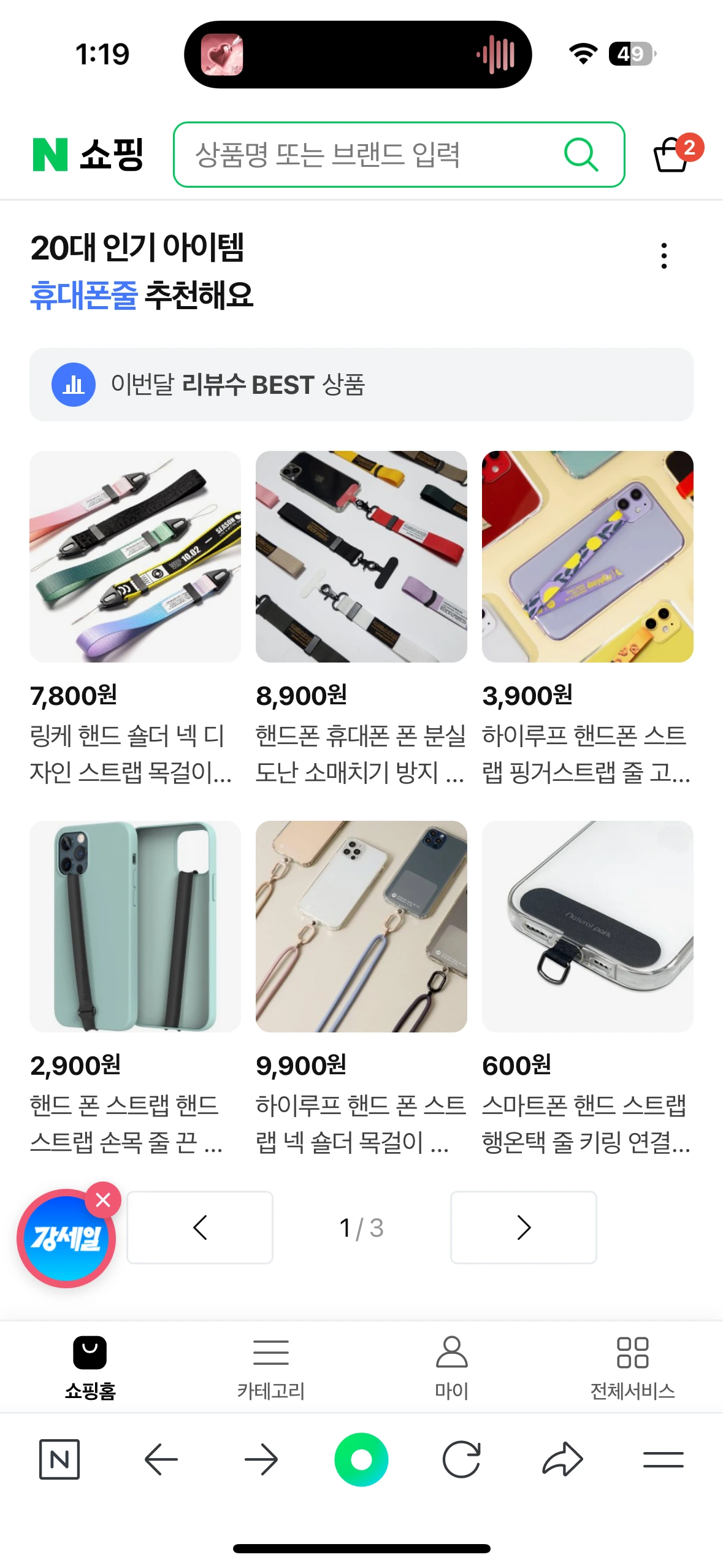 네이버 쇼핑의 추천에서 가장 장점이라고 생각하는 부분은 네이버에 검색한 검색어랑 연계가 잘 되는 점이라고 생각한다. 쇼핑 관련 검색뿐만 아니라 '뚜벅이 여행' 같이 최근에 진짜 관심 있게 검색한 검색어 추출이 가능하고, 종합몰이다보니 검색어에 맞는 다양한 상품군을 가지고 있는 것이 네이버 장점인 것 같다.