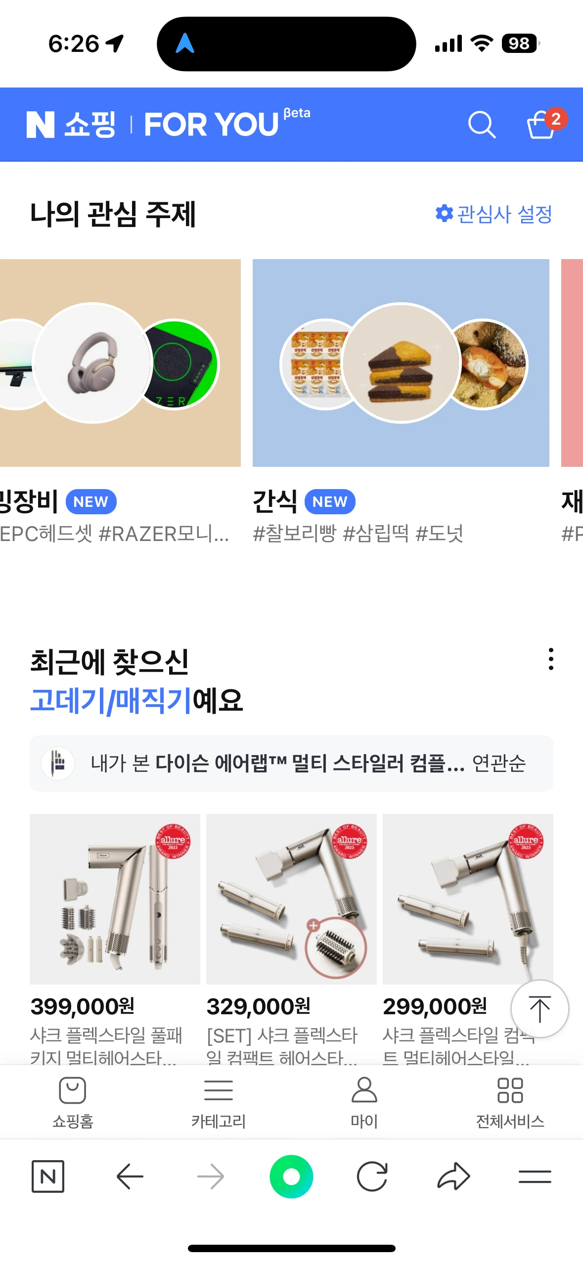 위에서도 언급했지만 네이버 추천영역을 둘러보면서 특징이자 가장 좋았던 점은 검색어와 연결이 잘 되어있고, 네이버에 검색했던 키워드를 기반으로 내 관심사가 자동으로 키워드/카테고리화 된다는 점이었다.