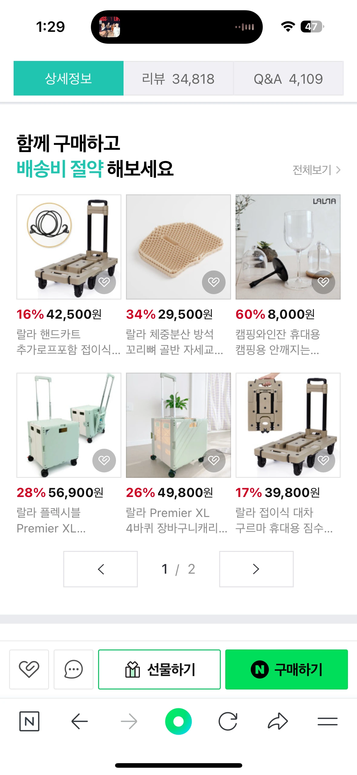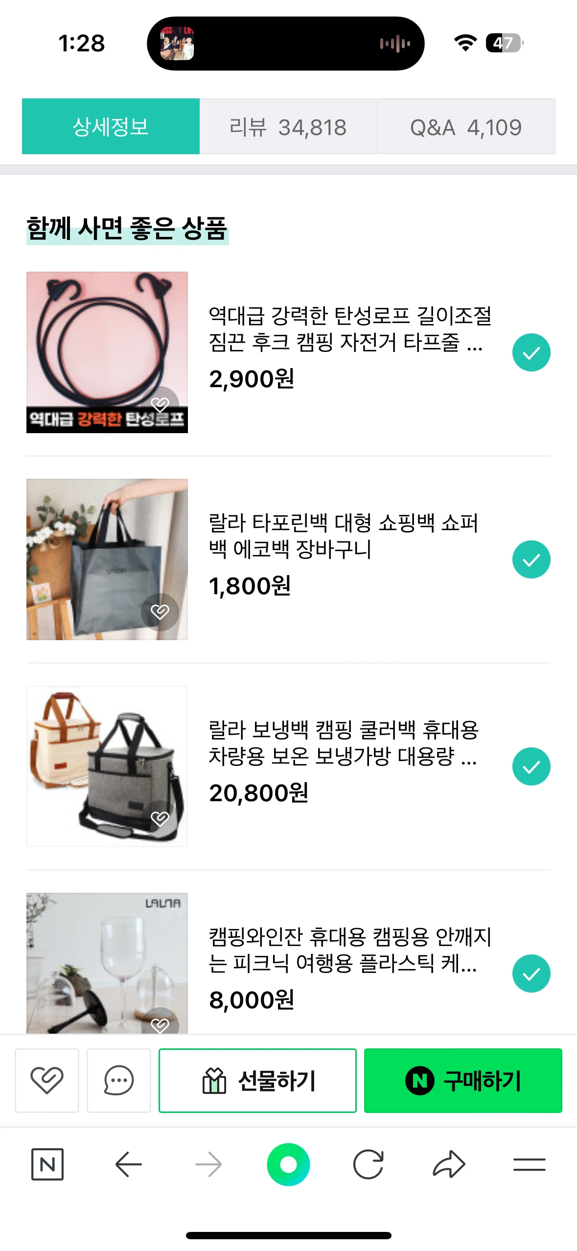 상품상세 하단에도 추천 상품들이 노출되고 있다. 일부는 광고 구좌로 다른 스토어의 유사 상품을 추천하고 있고, 스토어에서 묶음으로 구성해놓은 상품이나 배송비 절약이라는 네이밍으로 스토어의 여러 상품을 보여주는 구좌도 있었다. 이 영역엔 고도화된 추천 로직을 적용하고 있는 것 같진 않아서 자세한 분석에서는 패스하고자 한다.