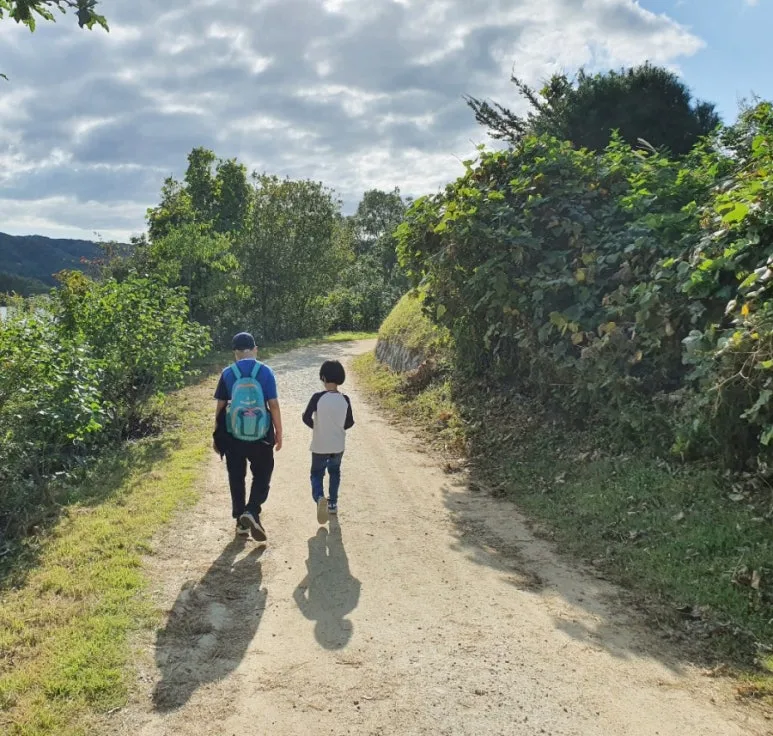 점심을 먹고 인근에 경치 좋은 트래킹 코스가 있다고 해서 차를 몰고 나와 보았다. 횡성호수길 코스인데, 지역 주민들이 운영하시는 트래킹 코스였고, 생각보다 관리가 잘 되어 있어 걷기에 부족함이 없었다. 걷는 길 주변에 꽃이나 나무들이 있어 눈이 심심하지 않았고, 곳곳에 호수를 배경으로 하는 뷰포인트가 있어 사진 찍기에도 좋은 곳이었다. 전체 코스가 4.5km이고 어른 걸음으로 2시간 이상 소요되는 곳이라, 우리 아이들에게는 짧은 거리는 아니었는데도 잘 따라와 주어 기분 좋게 트래킹을 마무리하였다. 캠핑을 가서 인근 지역 관광 포인트를 가본 것은 처음이었던 것 같다. 이동과 세팅에 필요한 에너지를 아끼니, 서로가 기분 좋게 여행을 좀 더 풍성하게 만드는 것. 카라반 여행의 가장 큰 장점이 아닐까.