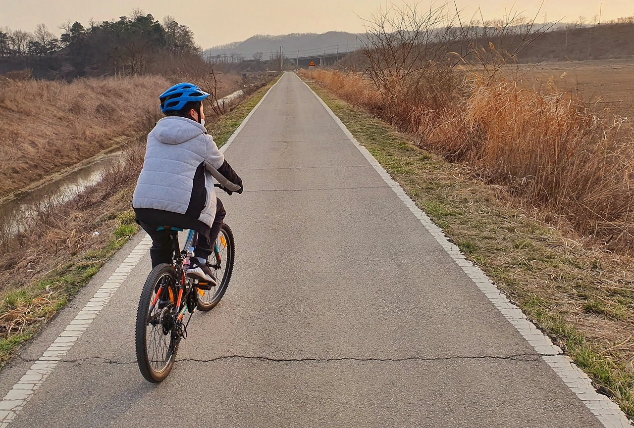 결과적으로는 해피앤딩으로 마무리를 했다. 돌아오는 길은 한 시간 남짓 걸렸던 것 같다. 컵라면 하나에 기운을 충전한 아들이 다시 콧노래를 부르며 라이딩을 하니 속도가 두 배는 붙어서 씽씽 내달렸다. 내비게이션이 없는 탓에 거미줄처럼 연결된 농로 속에서 집으로 가는 길을 찾아내느라 나는 두 배는 더 라이딩을 한 것 같다. 아마 아들과 둘이 왔으면 정말 깜깜한 밤에 논바닥에서 119에 구조 신청을 했을지도 모른다. 내가 앞에서 길을 찾아 헤맬 때 뒤에서 아버지가 손자를 다독이고 격려해 주시니, 아이가 기운을 냈다고 하는데, 어떻게 그렇게 빨리 왔는지는 지금도 미스터리이다. 큰 사고 없이, 어두워지기 전에 카라반에 도착했을 때의 그 안도감이란! 아버지와 나는 좋은 추억이라고 지금도 이야기하고 있지만, 아이는 그 이후로 3개월 동안은 자전거를 쳐다도 안 봤었다.
