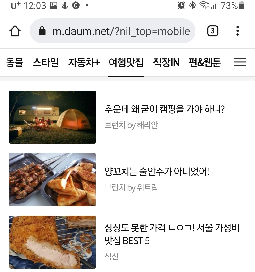 아침에 일어나 보니 열몇 개의 브런치 알람이 올라와 있었다. 조회수 1000, 2000, 3000, 10000이 돌파하였습니다! 어제 쓴 글도 아니고 발행한 지 일주일이 다 되어가는 글이 뜬금없이 조회수 10000이라니? 혹시 몰라 다음에 들어가 확인해 보니, 여행/맛집 코너에 내 글이 소개되어 있는 황당한 상황.