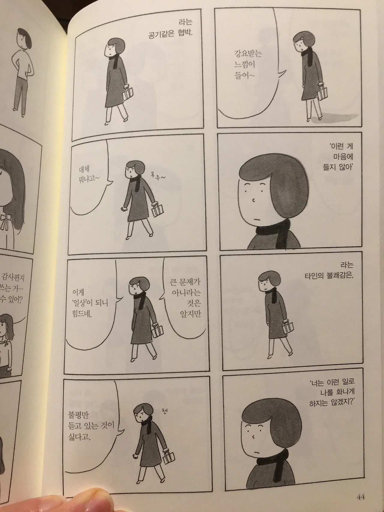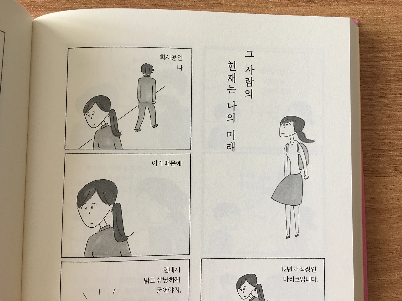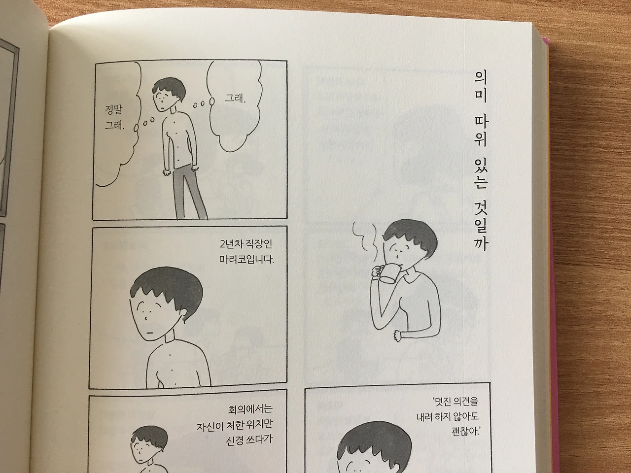 퇴사 후 몇 달 동안 아픈 몸을 치료하고, 내 마음이 왜 힘든지 들여다보며 지냈다. 또다시 상처 받고 싶지 않아서 아직도 겁이 난다. 그래도 마스다 미리의 담담한 독백이 위로가 되었다. 마음이 아플 때 마스다 미리를 만날 수 있어서 참 다행이었다.