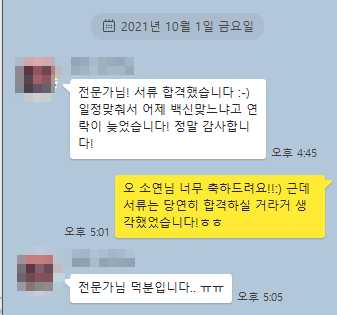이번에도 저에게 컨설팅을 받았고, 서류는 무난하게 통과했습니다.