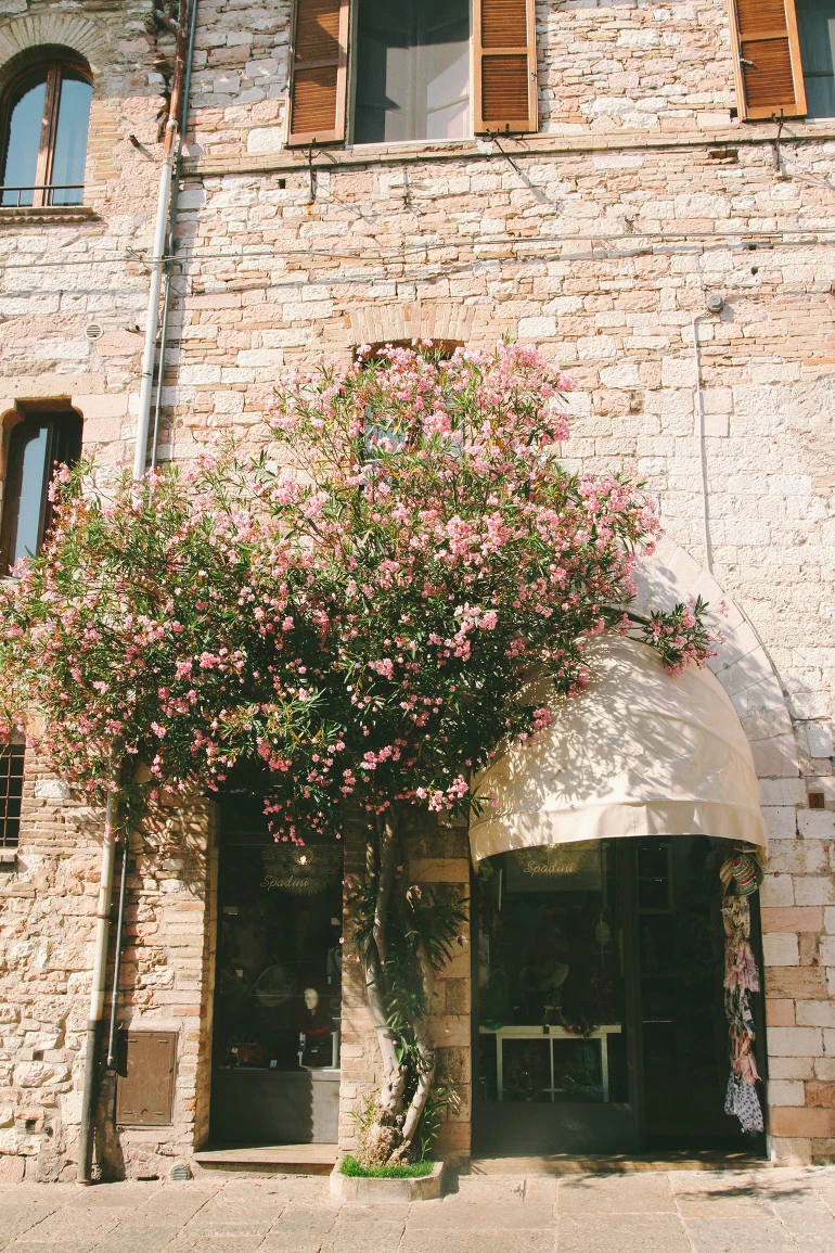 도시 곳곳은 정말 중세에 시간이 멈춘듯했다. 오래된 돌 벽도 그랬고 빨간 꽃으로 장식한 나무 문도 그랬고 이런 귀여운 푸줏간과 멋진 꽃나무도 그랬다. 순간순간을 전부 기억하고 싶어서 눈을 깜박였다.