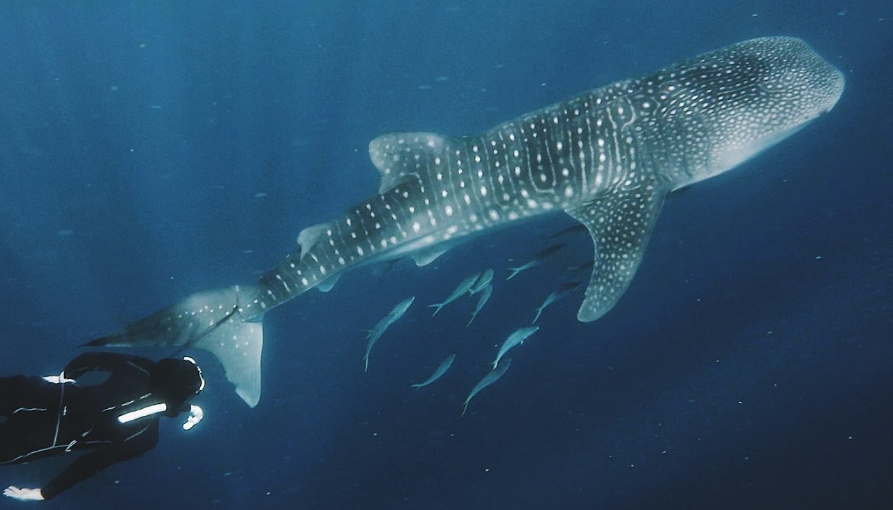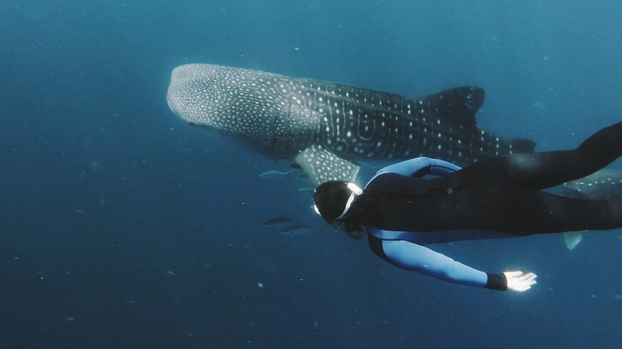 실은 대여한 핀이 조금 커서 핀이 달랑달랑 벗겨지기 직전이었고, 왜인지 다리에 자꾸 쥐가 나서 별로 좋은 상태가 아니었는데 강사님과 버디가 정말 미친 스피드로 망망대해를 가로질러 떠나고 있었다. 여기서 저 두 사람을 놓치면 나는 진짜 큰일 난다는 생각에 덜컥 무서워졌고 버디의 핀 끝만 보면서 함께 질주했다. 고래상어도 보고 싶었지만 잘못하다간 바다에서 길 잃겠다 싶어서 더 열심히 따라갈 수밖에 없었지. 그렇게 절실하게 따라갔지만 고래상어 가족은 너무 먼 곳에 있어서 나는 떠나가는 제일 작은 고래상어의 꼬리만 겨우 볼 수 있었다. 깊은 바다 속으로 사라지는 등과 꼬리, 그 무늬만 보았어도 짜릿했다.