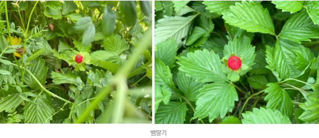 종종 외출하기 전에 미니 텃밭에 심은 딸기를 따 먹는다. 자연이 키운 원종 딸기라서 크기는 작지만 맛이 매우 부드럽고 달아서 한 주먹만큼 따 먹으면 포만감이 큰 편이다. 그런데 이날은 유독 딸기와 비슷해 보이는 열매 하나가 내 눈에 튄다. '뭐지' 하면서 손을 뻗어 끄집어내 보니 뱀딸기였다. 예전에 안 보이던 이 열매가 보이는 이유가 뭘까 곰곰이 생각해 보았다.