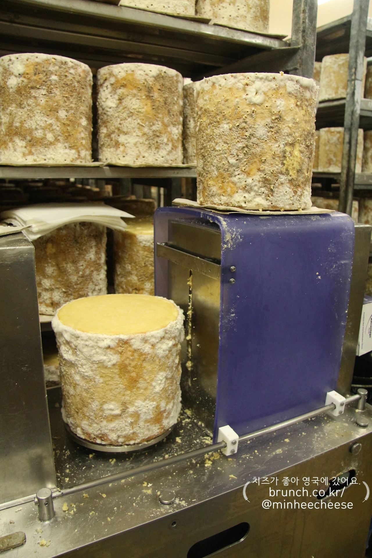 피어싱 기계가 쓱싹쓱싹 소리를 내며 치즈를 찔렀다. 아무리 생명 없는 치즈라지만, 그 쓱싹거리는 소리가 그리 편하게 들리지 않았다. 그런 감상을 말했더니 애나가 나를 숙성실의 다른 칸으로 데려갔다.