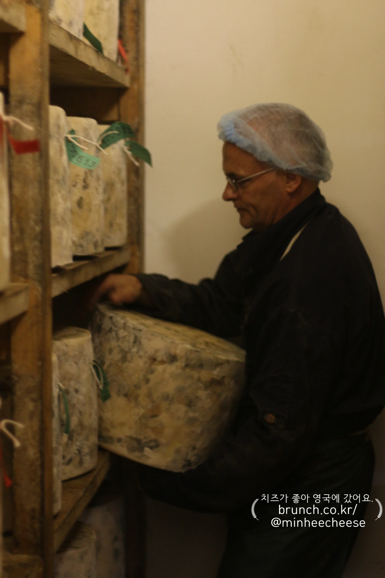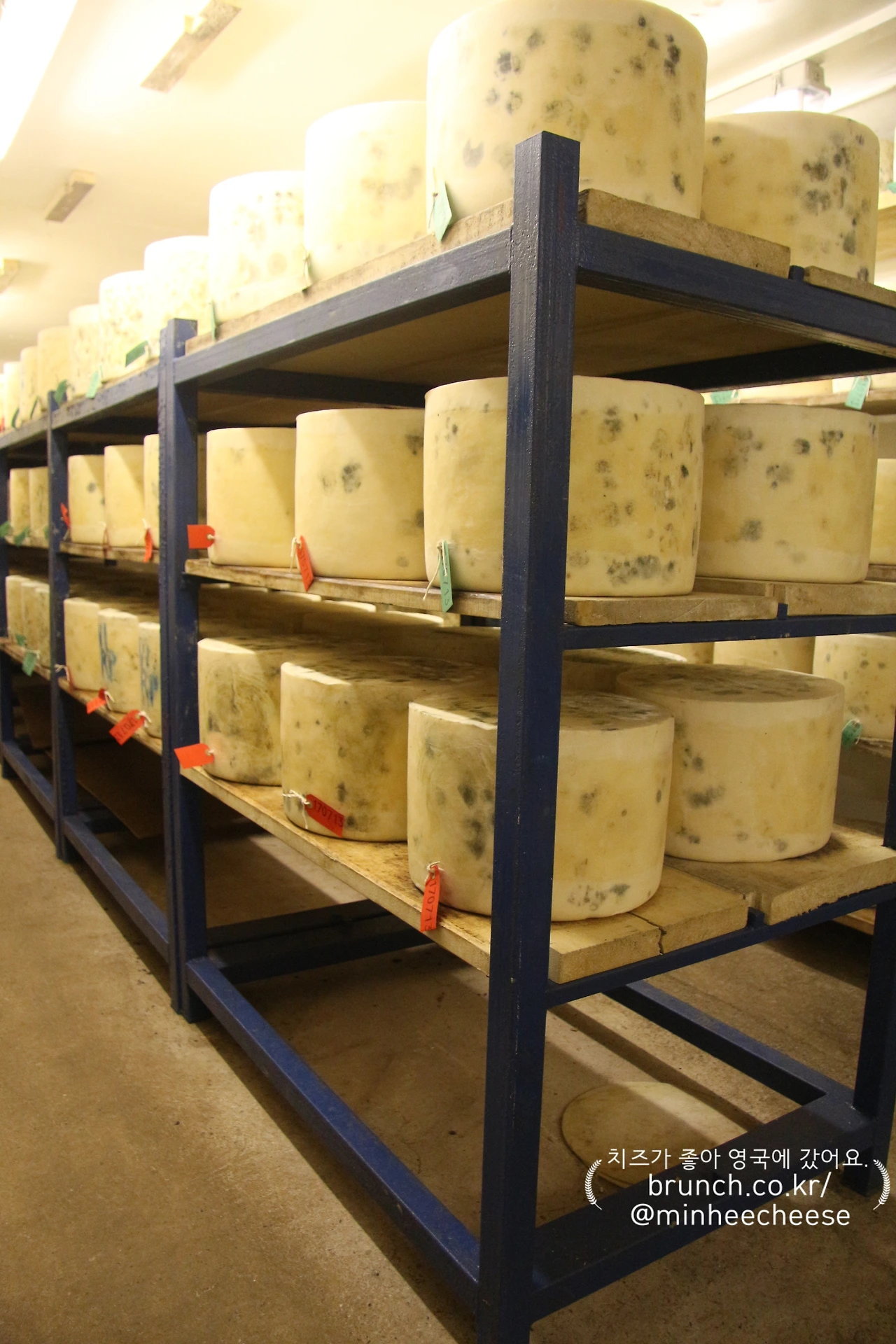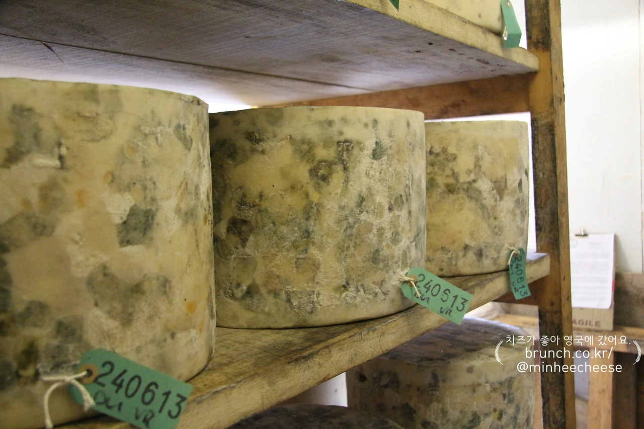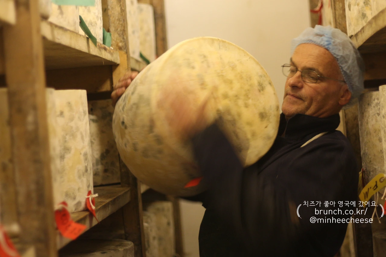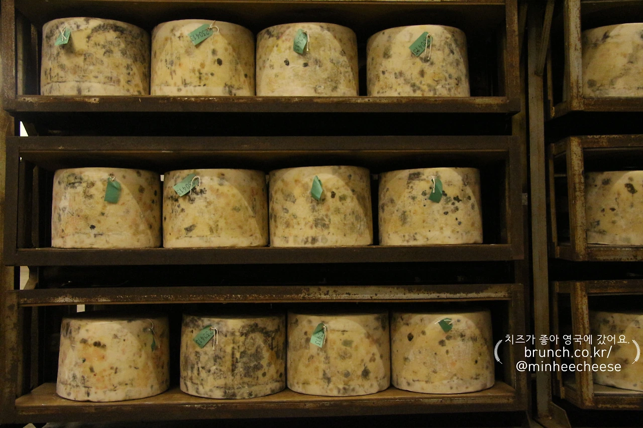 가장 큰 숙성실에는 약 1만 개의 치즈가 저장되어 있고 나머지 세 곳의 작은 숙성실에는 2,000여 개의 치즈가 저장되어 있다. 이들 숙성실 모두 온도는 9℃, 습도는 70~80%여서 어느 곳에 들어가든 싸늘한 냉기가 느껴졌다. 저온에서 천천히 숙성되기에 크롭웰비숍의 스틸턴 치즈 숙성실과 같은 따가운 암모니아 냄새는 거의 느낄 수 없었다. 다만 숙성된 치즈 사이를 지날 때 축축한 곰팡이 냄새가 나는 정도였다.