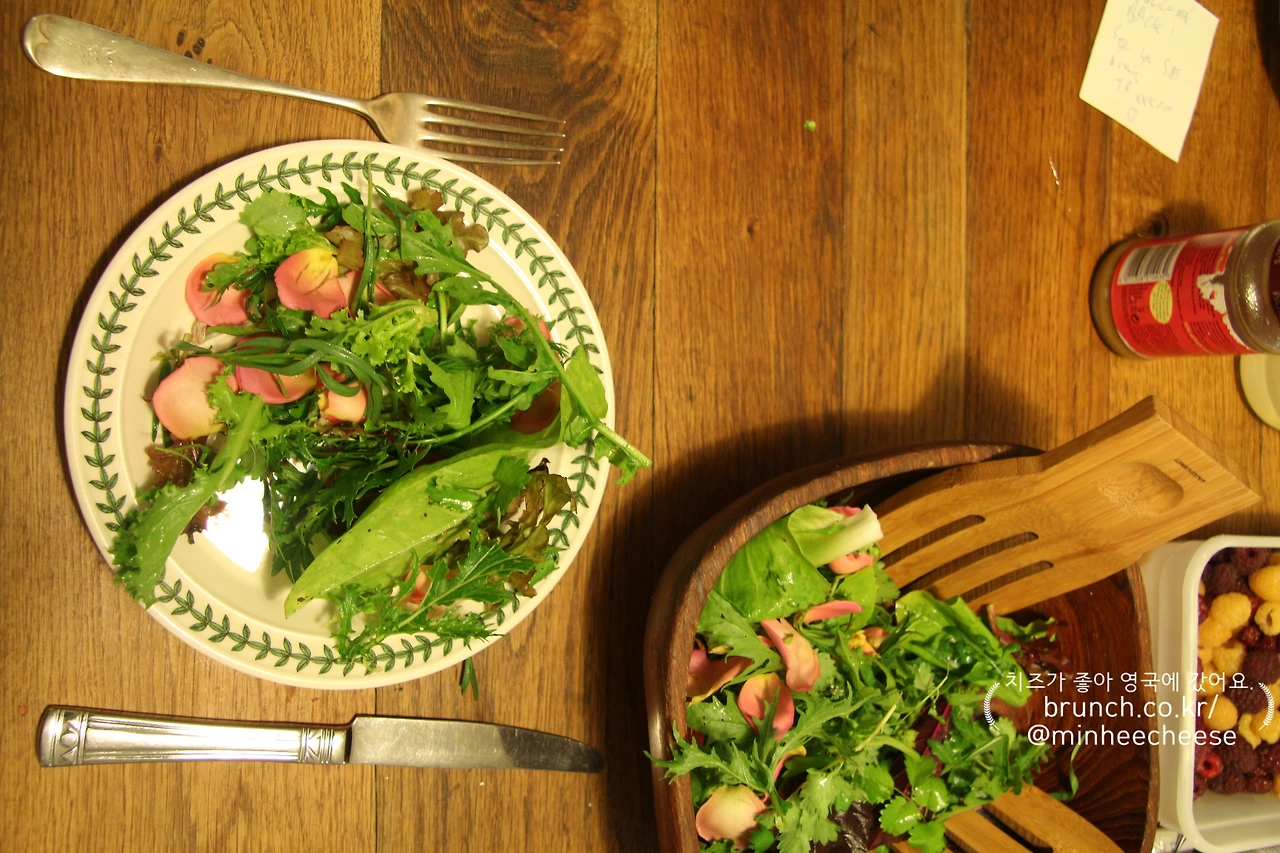 마당에서 따온 채소는 그대로 저녁 식탁의 샐러드가 되었다.