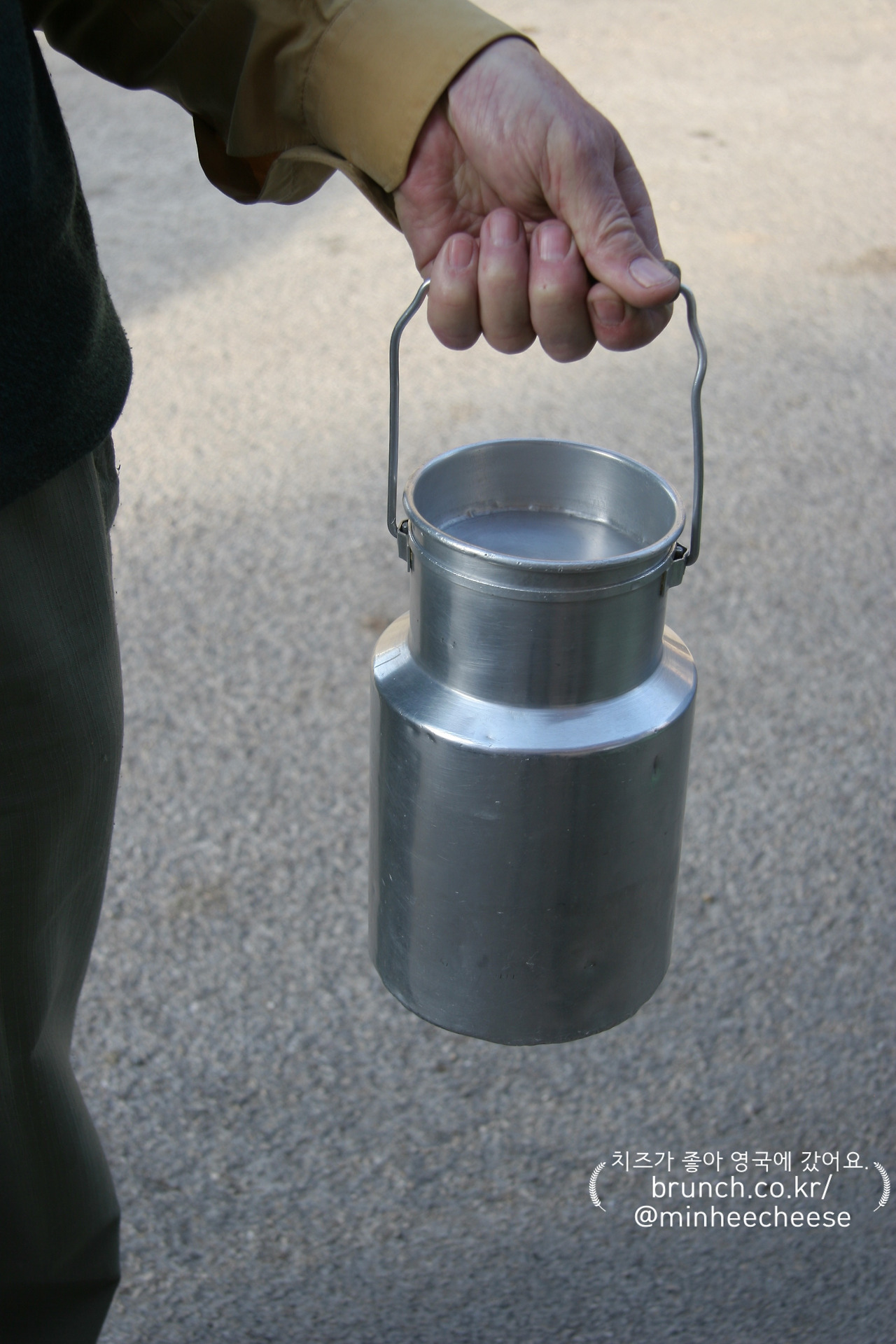저녁 먹을 시간에 치즈 작업장 앞에 모여 담소를 나누는 이유를 알 수 없던 나는 잠시 후 그들 옆에 있는 동그란 통에 우유가 가득 담겨 있음을 알게 되었다.