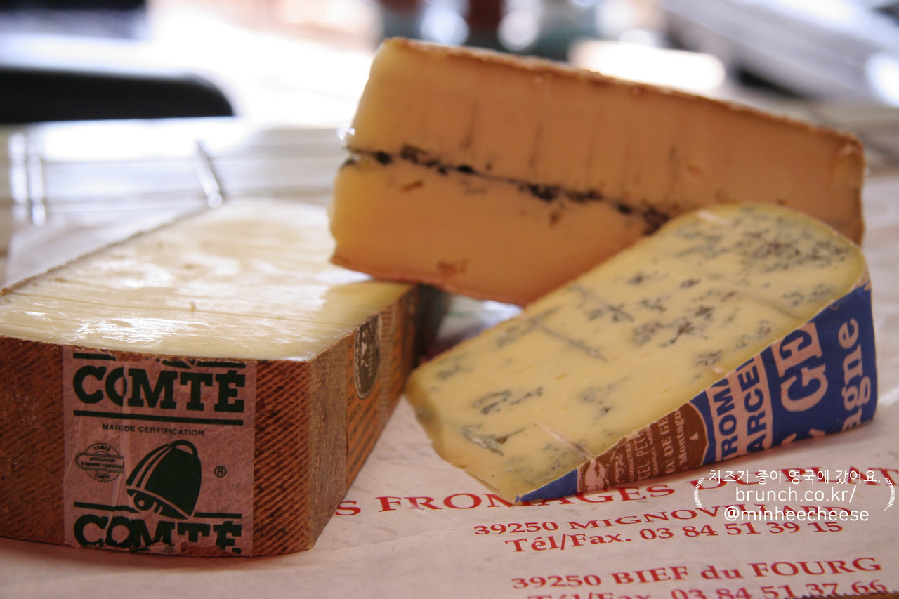 프랑슈 콩테 마을에서 만들어지는 치즈. 왼쪽부터 콩테, 모비에, 블루 드 젝스.