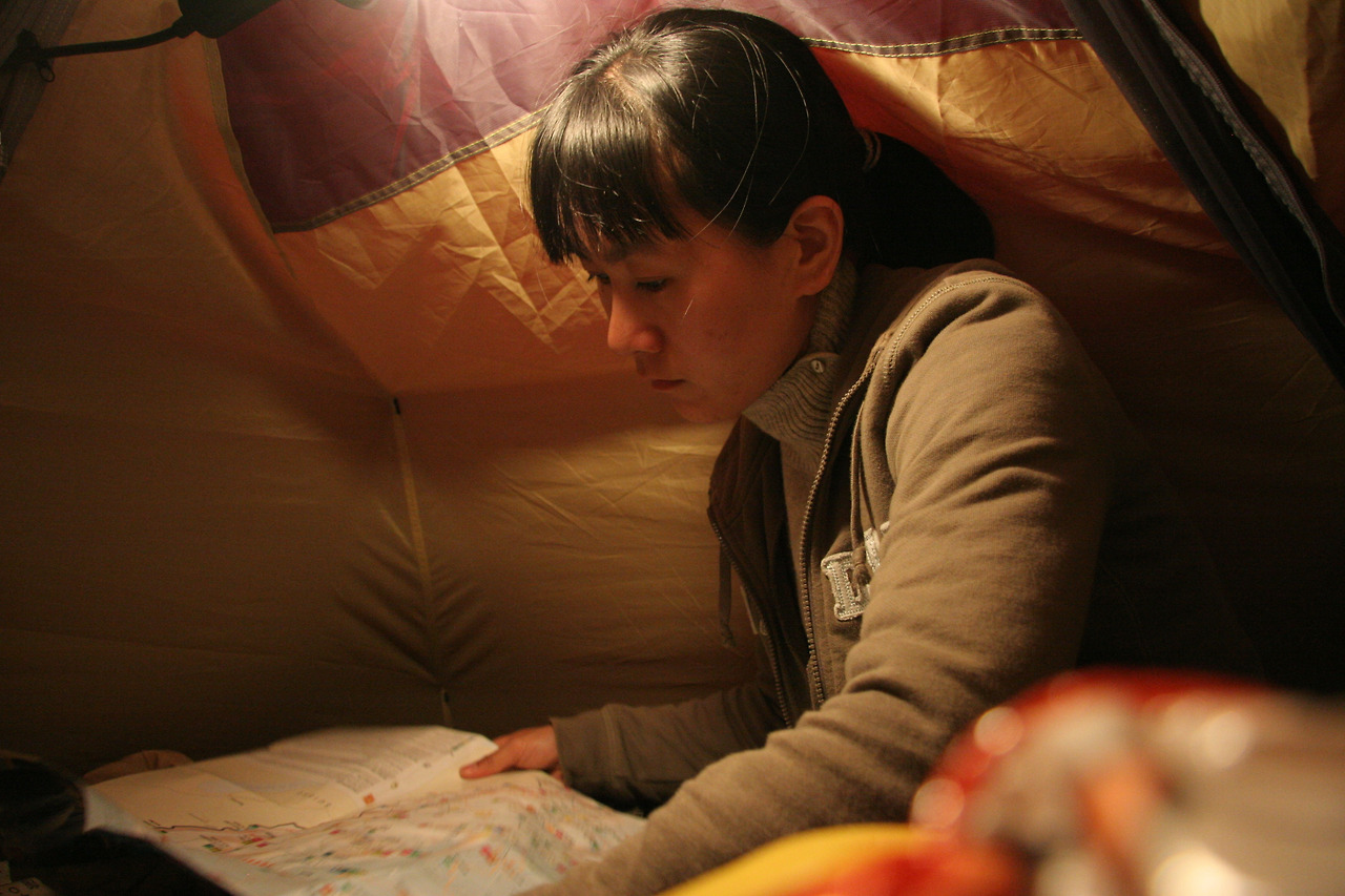 이 전에 한 번도 텐트를 쳐 본 적 없었기에 우선 텐트의 모양 예측이 그러하듯 폴대를 연결해 텐트의 겉 부분 구멍마다에 끼워 넣었다. 텐트는 다행히도 모양을 잡아갔다. 차에서 물건들을 꺼내 텐트 앞에 늘어놓느라 몇 번을 왔다 갔다 해 본 뒤에 자동차의 트렁크가 텐트와 마주 보고 있어야 동선이 짧아 짐을 깨달았다. 차를 다시 주차하고 전기를 끌어와 물을 끓이고 밥을 해결하고 첫 캠핑은 어떻게 보냈는지 세세한 기억은 잘 안 난다.