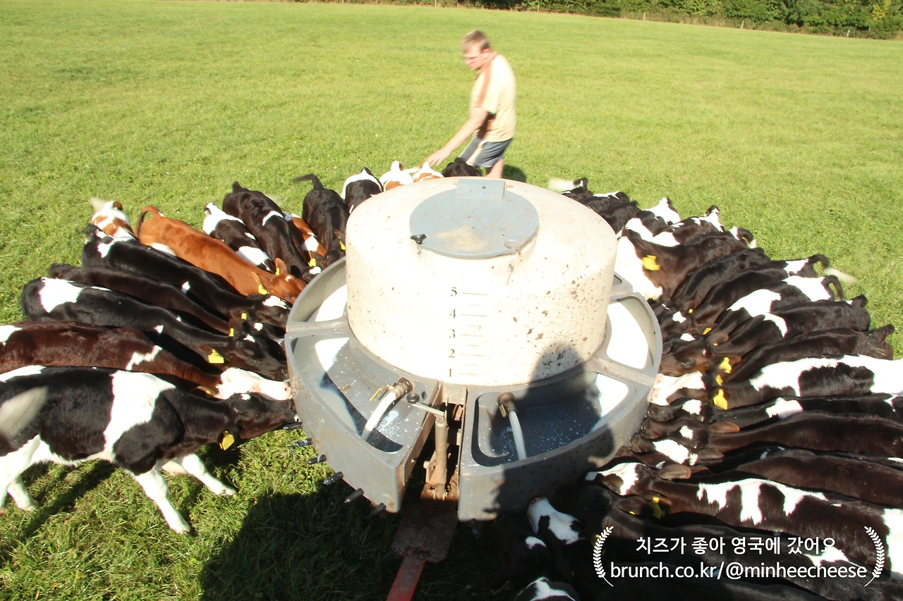 우리는 차를 타고 또 다른 언덕으로 이동했다. 햇살이 눈에 부서진다는 표현이 그대로인 초록 능선에 송아지들이 가득 이었고 해미쉬가 나타나자 어미소가 온 것 마냥 송아지들이 달려왔다. 수 십 마리의 송아지들을 한 번에 먹일 수 있는 밀크 바 Milk bar를 끌고 그 가운데에 멈춰 서자 어미소의 젖을 찾아 물 듯 송아지들이 알아서 자리를 잡고 먹기 시작했다.