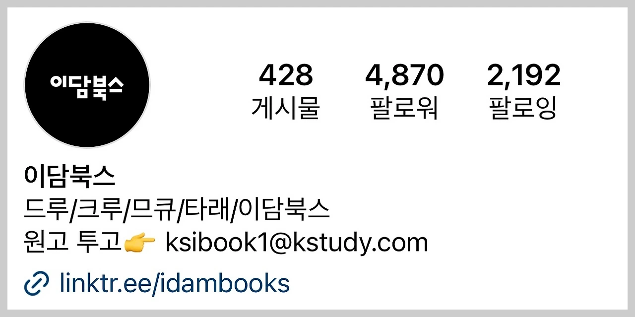 신청은 이담북스 인스타그램 아래의 링크를 클릭해 주세요. ^^