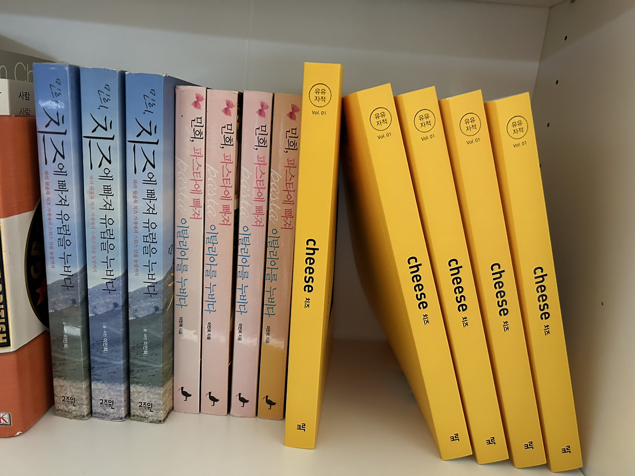 이번 치즈책을 구입하면서 예전 “민희, 치즈에 빠져 유럽을 누비다. “ 책을 중고로 구입했다거나, ”민희, 파스타에 빠져 이탈리아를 누비다. “ 는 못 구했다거나 등의 이야기들을 들었다.