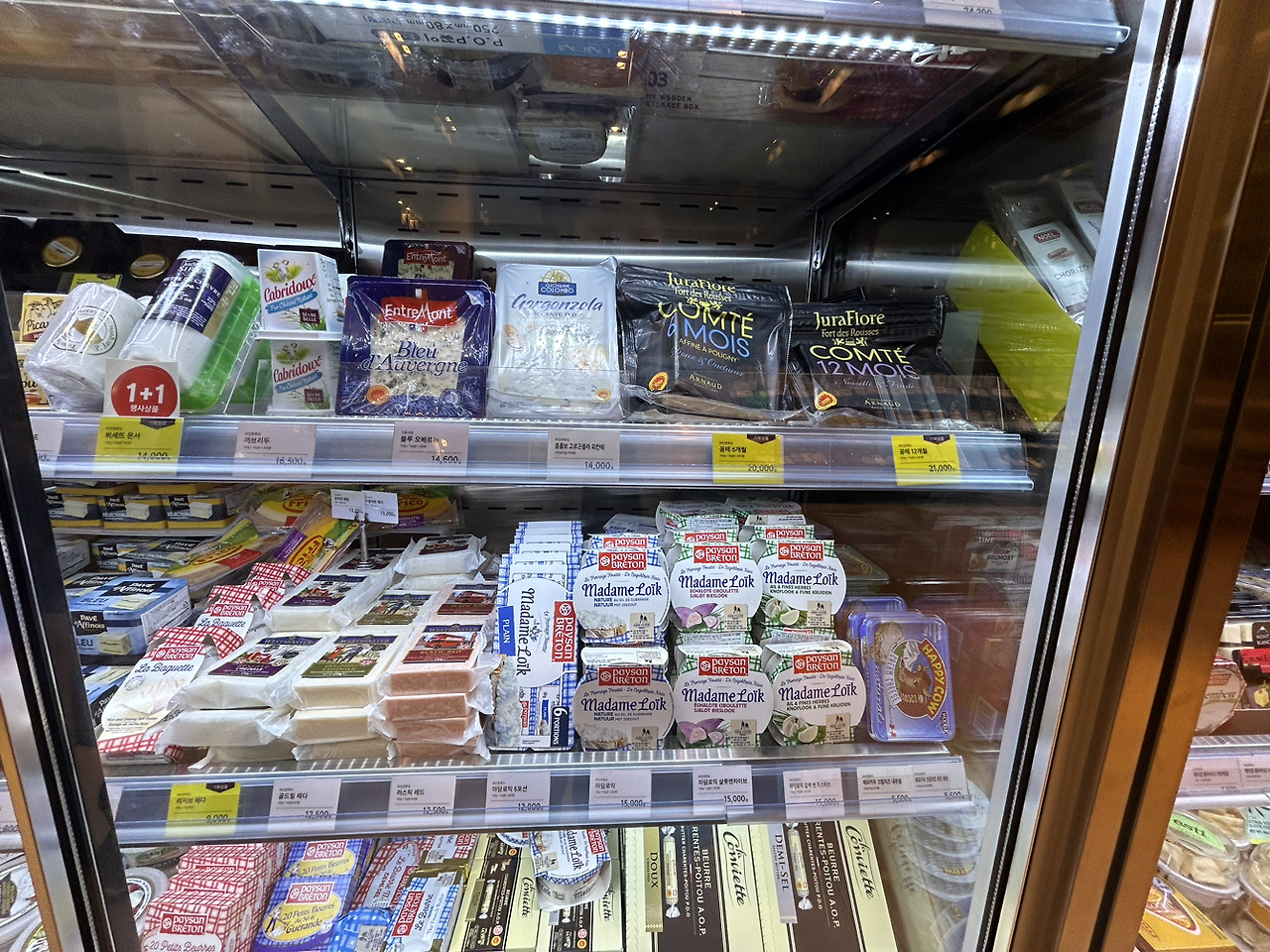 저층의 명품관들은 지나치고 점퍼가 판매되는 아웃도어 매장만 구경하곤 결국 찾아간 곳은 지하의 치즈 매장이었다.