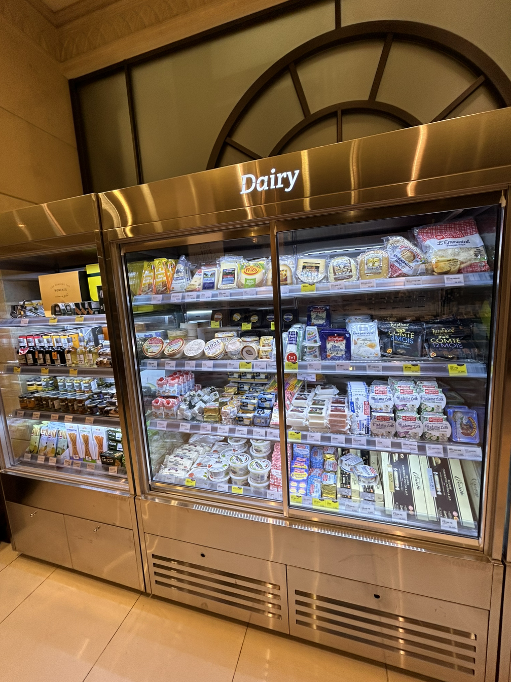 슈퍼 입구의 오픈 냉장고에는 치즈가 가득이었다.