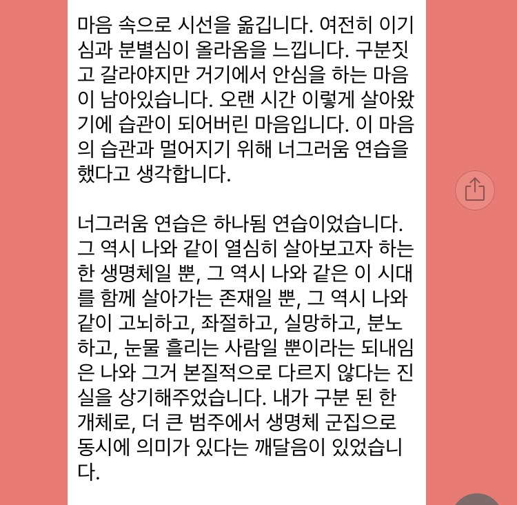 세상에 너그러움의 양을 증가시키기 위한 의도로 11월 한 달간 ‘하루 5분 너그러움 키우기’프로젝트를 진행했는데.