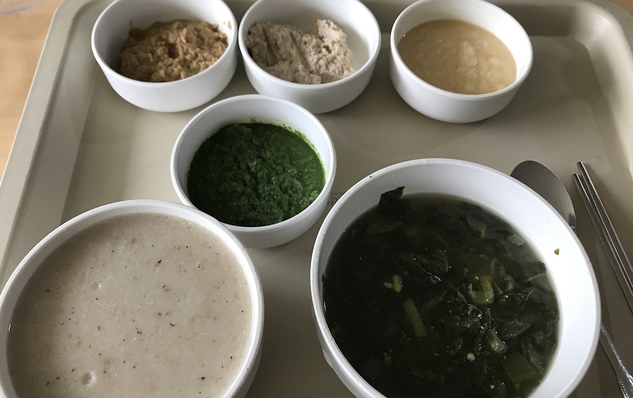 아빠의 요즘은 알맹이 있는 음식을 거의 못 드신다. 식사는 모두 갈아서 나오는 치료식이다. 갈아 만든 사태찜이나 조기조림 이런 게 너무 참신해서 며칠 전엔 함께 웃었다.