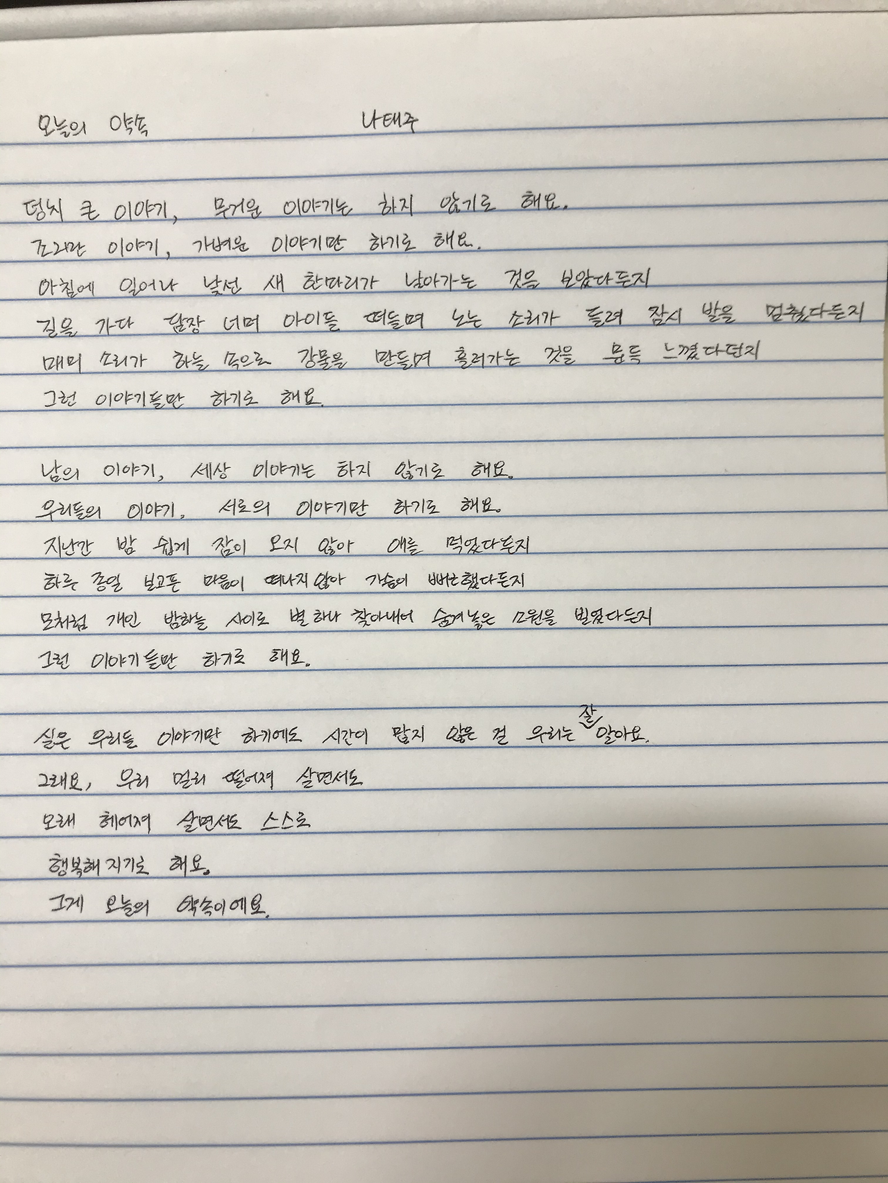그게 오늘의 약속이에요.