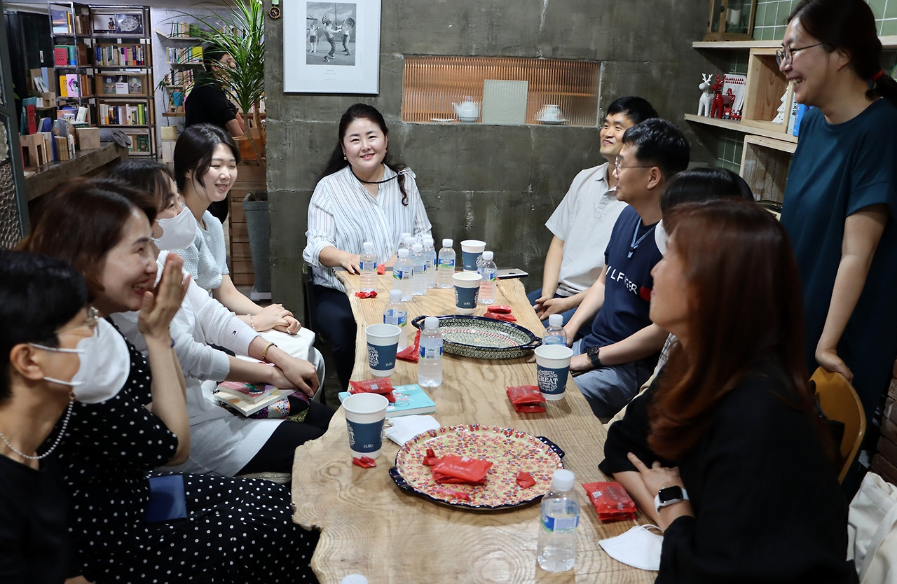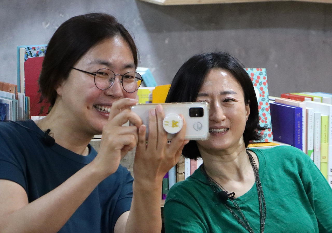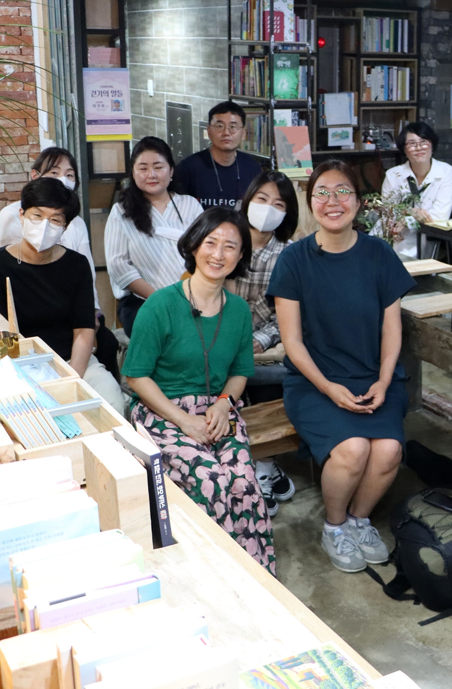 추앙하는 두 대상(선배와 책방)을 동시에 만나는 저녁 시간을 향해 달려가는 길은 내게 그저 마법 같았다. 그날 저녁 북토 크는 내가 상상하던 모습 그대로였다. 적당하고 느슨한 유대감으로 모인 10여 명의 참석자와 마이크도 없이 생목으로 진행되었지만 귀를 기울이는 모습들. 가볍지만 든든한 먹거리와 참여자들의 행복한 웃음. 책방을 가득 채운 좋은 에너지의 파장이 금요일 아침까지 전해진다. 아마 6월의 제주까지 이어지겠지. 아우 좋아라~