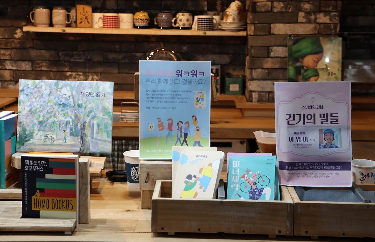 SNS에 서점 이야기를 종종 올리니 작가며 출판사 지인들이 관심을 보였다. 오랜만에 연결된 사람부터 자주 연락하는 사람까지 동네 책방과 내가 너무 잘 어울린다고 했다. 내 자리에 있다는 것이 좋았다. 월급 받는 일도 아니지만 정성껏 서점에 나가서 노트북이며 스마트폰으로 내 일을 하면서 손님을 맞이했다. 방문자수는 매우 적지만 한 사람 한 사람이 소중했다. 그 소중함을 모아 모아, 독서모임에서 결정된 책 <걷기의 말들> 저자 마녀체력 이영미 작가에서 쪽지를 남겼다. 2020년 한강변에서 달리기 모임에서 만난 인연의 끈이 이렇게 이어졌다. 논산에는 한 번도 와본 적이 없으시다기에 같이 시민공원도 걷고 반야산도 가고 싶었다. 욕심이 컸다. 반짝반짝사진방 최영교 작가에게 영상도 부탁을 했다. 좋은 콘텐츠를 하나 만들어봐야지 싶었다. 날짜는 5월 25일로 정해졌다. 예산서도 짜보았다. 예상된 적자다. 아니 기쁜 투자로 개념을 바꿔보자. 이 투자로 나는 무엇을 거둘 것인가? 이 투자로 나는 관계 인구에 대한 콘텐츠를 더 성장시킬 수 있는 계기를 만들 것이다.