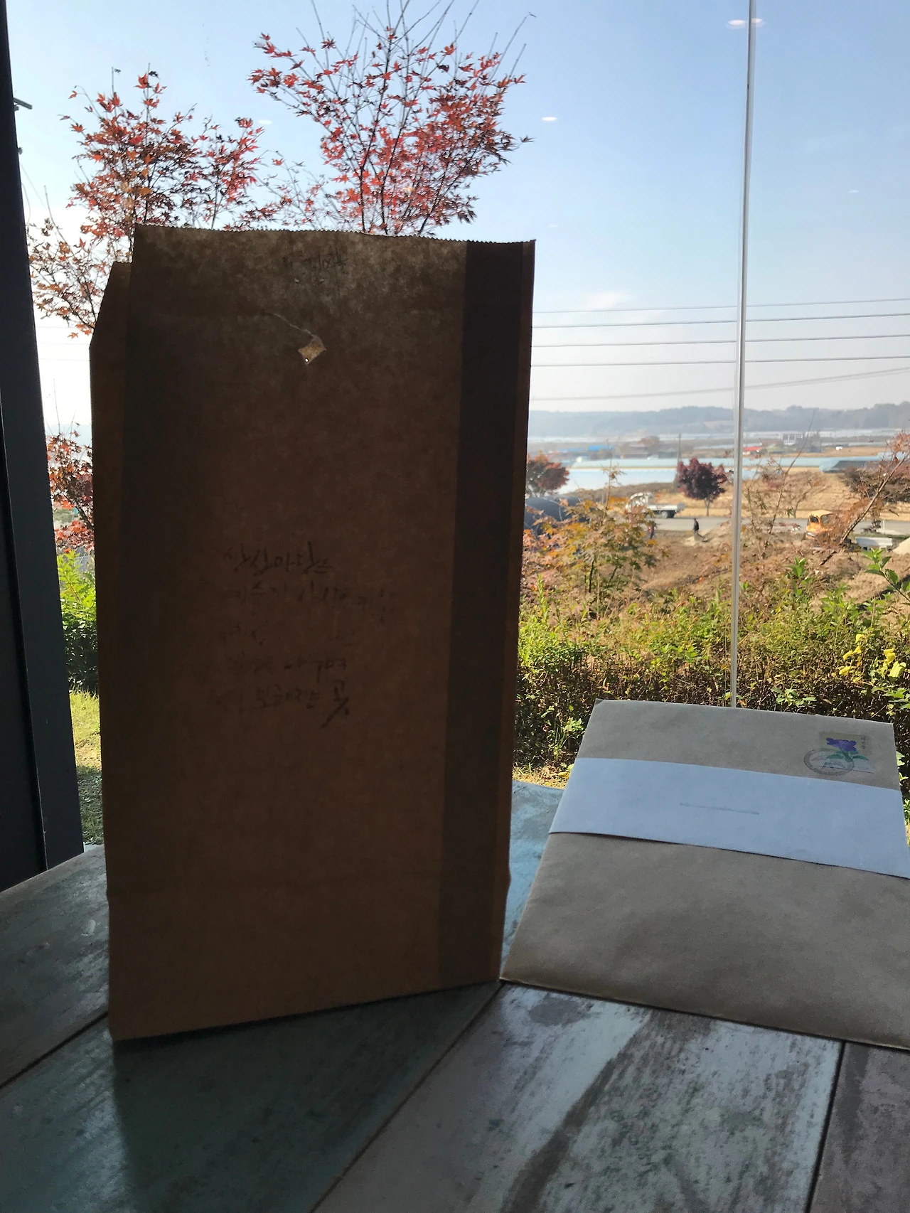 초대해준 이에게 제비 모빌을 선물했다. 잘 받았다며 돌아온 문자 속 사진. 봉투 속에 단풍나무가 들어 있네. 논산의 가을을 마음에 잘 담아서 서울에 도착했어요. 고맙습니다.