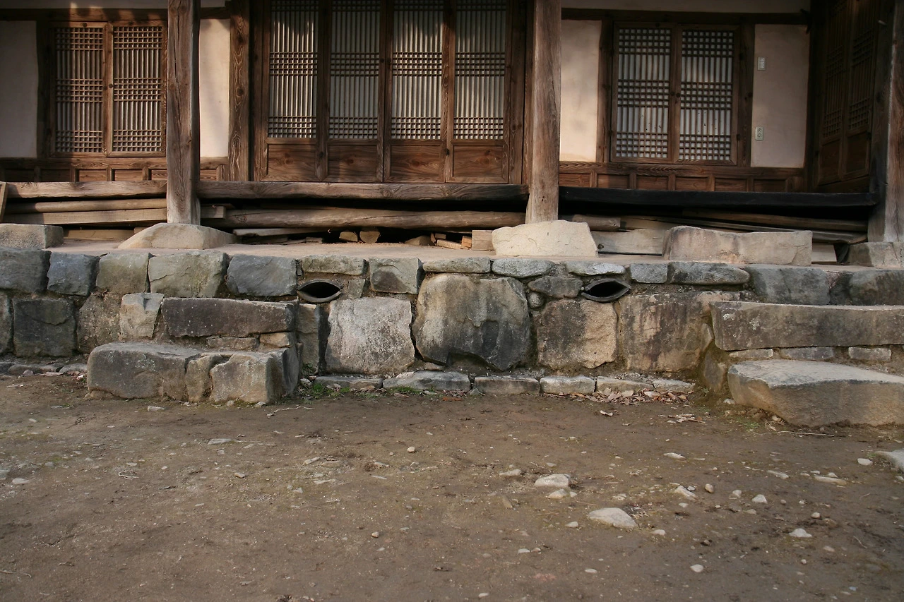 그러면 기단이 높으면 높을수록 좋지 않을까 싶지만, 남아있는 조선시대 건축물을 보면 일반 주택은 기단이 1~3단 정도로 조성되는 것이 일반적입니다. 어느 정도 불편함을 해소할 수 있는 수준에서 만들어지면 된다는 것이겠지요. 예전 시대에는 흙이나 기와 등으로 기단을 조성을 한 예도 있지만 일반적으로는 석재, 즉 돌을 이용하여 기단을 만들었습니다. 돌을 이용하여 만든 기단도 자연석을 사용하였는지, 가공석을 사용하였는지에 따라 구분이 됩니다.