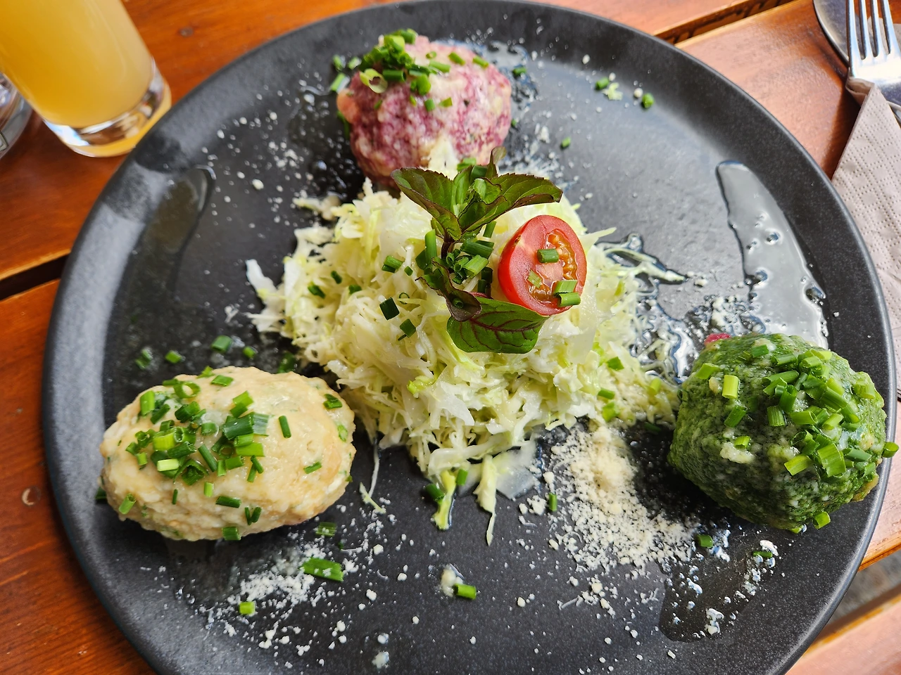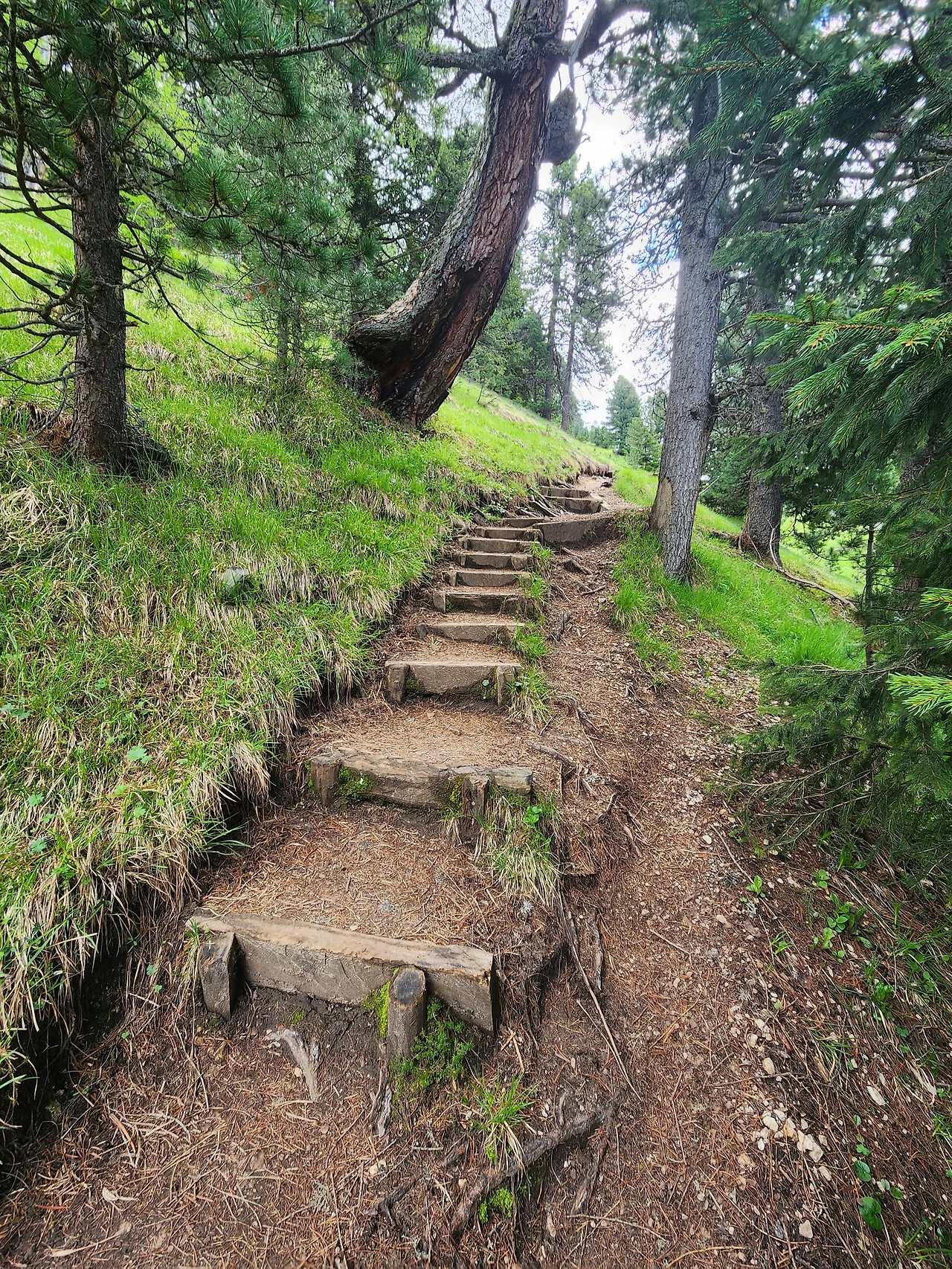 할 수 없이 내려가는 길에 Gampen Alm에서 점심을 먹었다.어제도 여기서 주스를 한 잔 마시고는 munkel trail을 걸어 Geisler alm까지 한 번 더 걷느라 들렀었다. 돌로미테의 산장들은 음식들이 다 맛있고, 가격도 비싸지 않다. 시내 레스토랑이나 산장이나 음식가격이 거의 비슷하다.