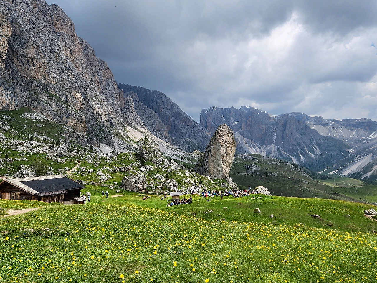 Pieralingia는 야유회 같은 모임을 할 만큼 대중적인 곳인가 보다. 작은 산장에선 음식도 팔고, 사람들이 근처에서 많이들 놀고 있다. Col Raiser에서 리프트를 타고 올라와서 조금만 걸으면 올 수 있는 데다탁 트인 아름다운 경치에 너른 초원이 펼쳐져 있으니 야유회 장소로는 정말 좋겠다.