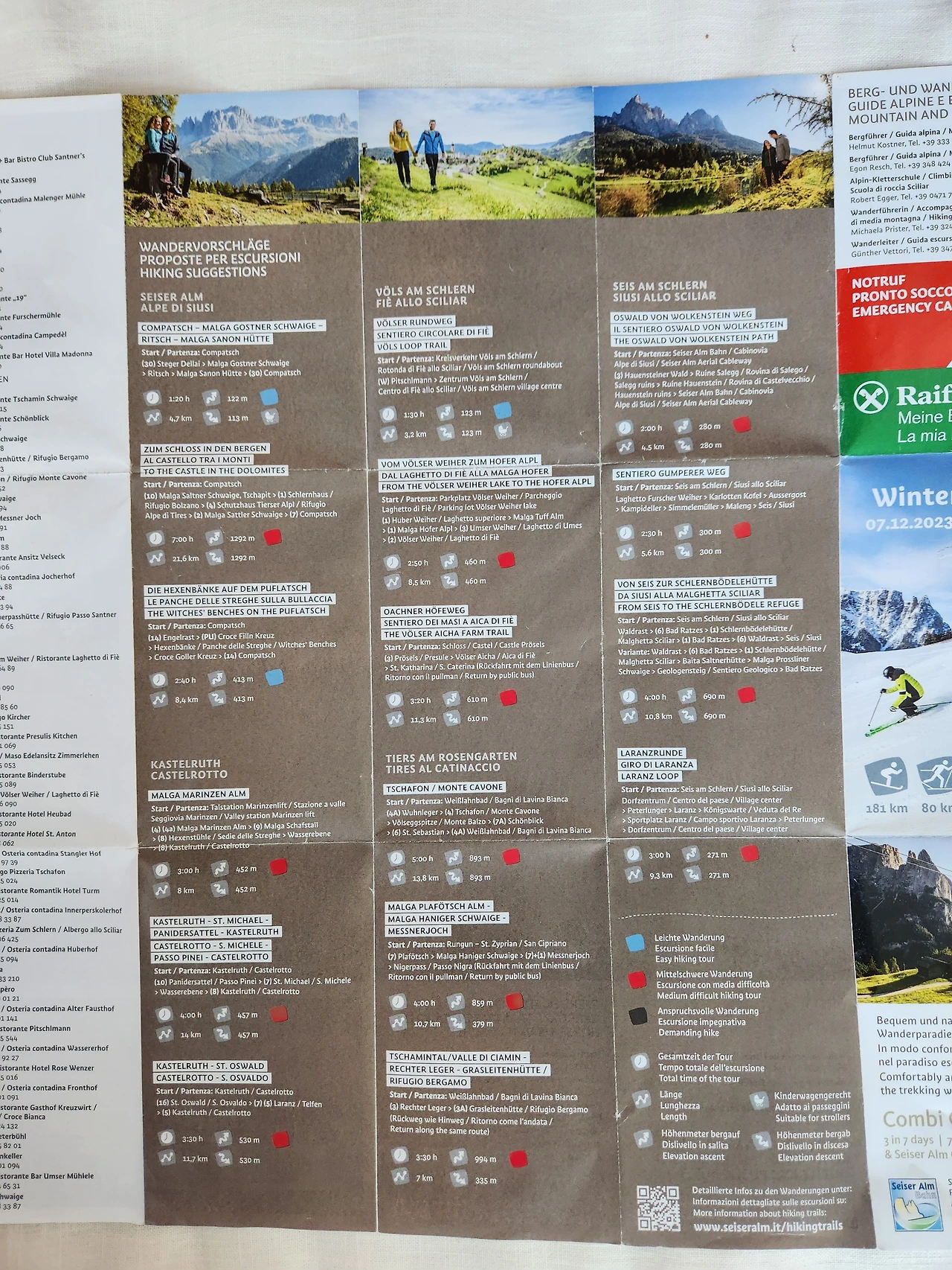 트래킹 경로 : Mont Sëuc gondola mountain station (2005 m) – Saltria (1850 m) – Monte Pana (1636 m) – Santa Cristina (1500 m)