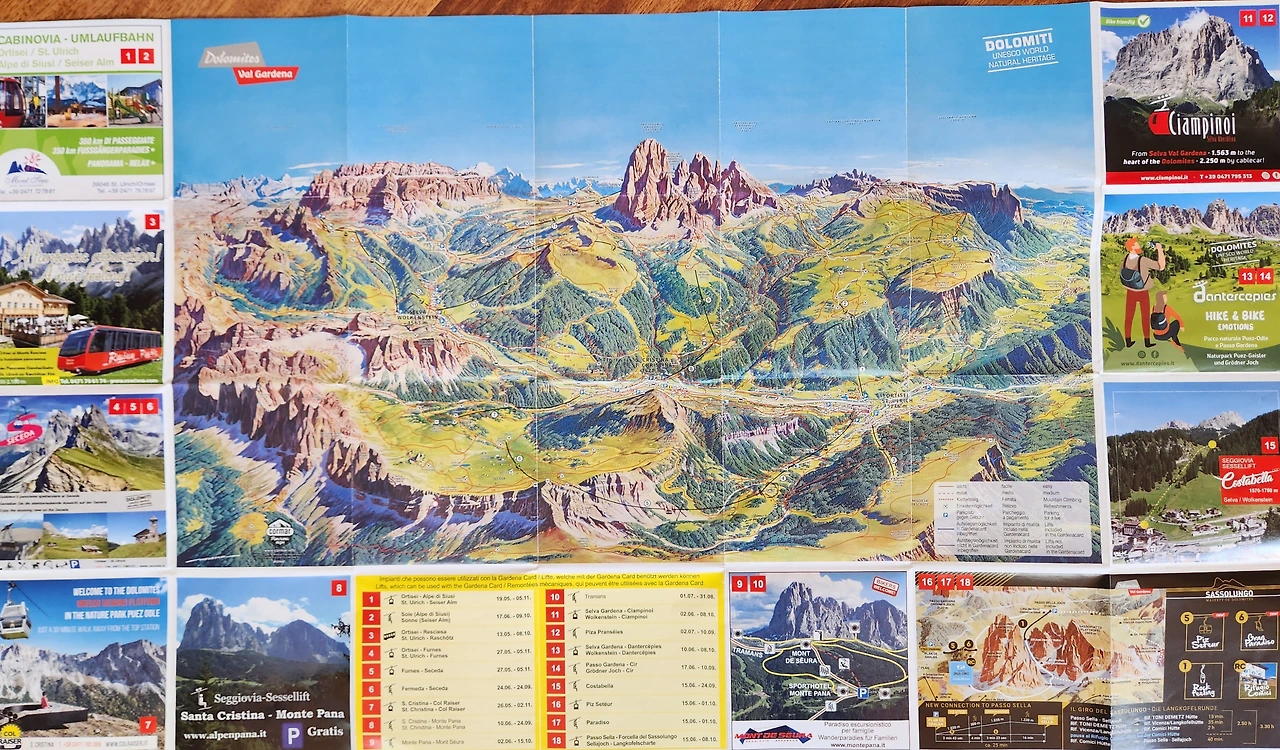 케이블카 : Ortisei-Furnes (gondola) / Furnes-Seceda (aerial cable car)
