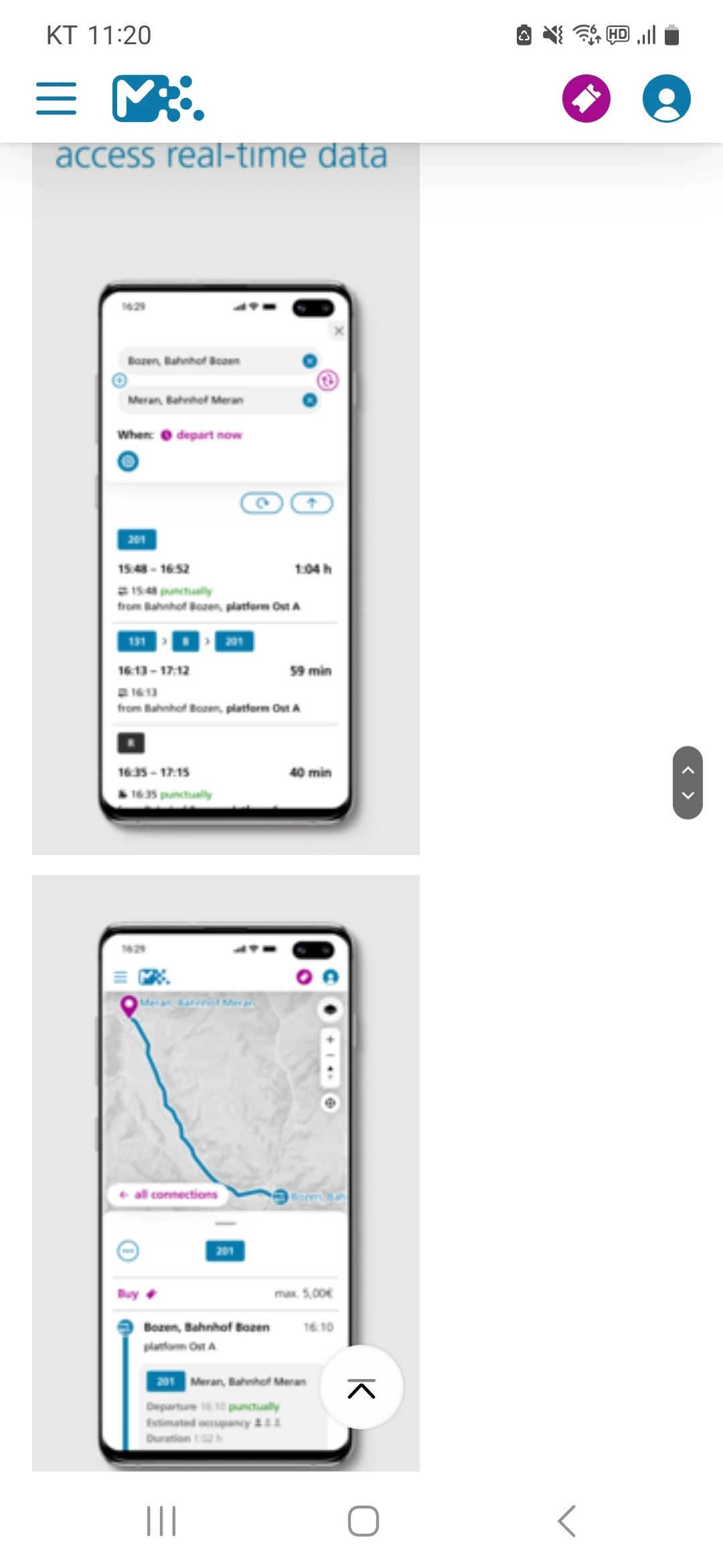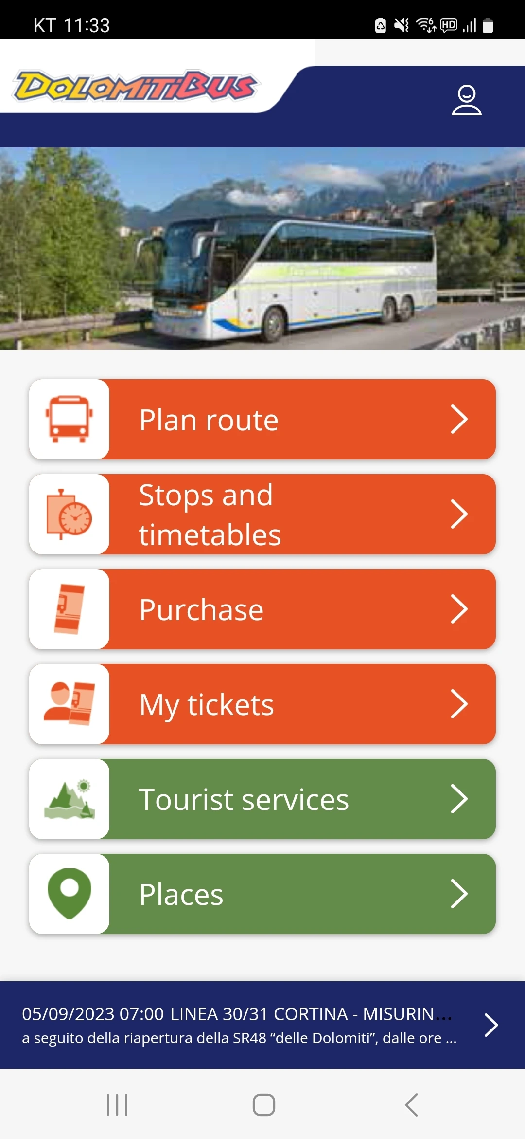 또한 트레치메를 가기 위한 버스티켓도 앱에서 예매할 수 있습니다.