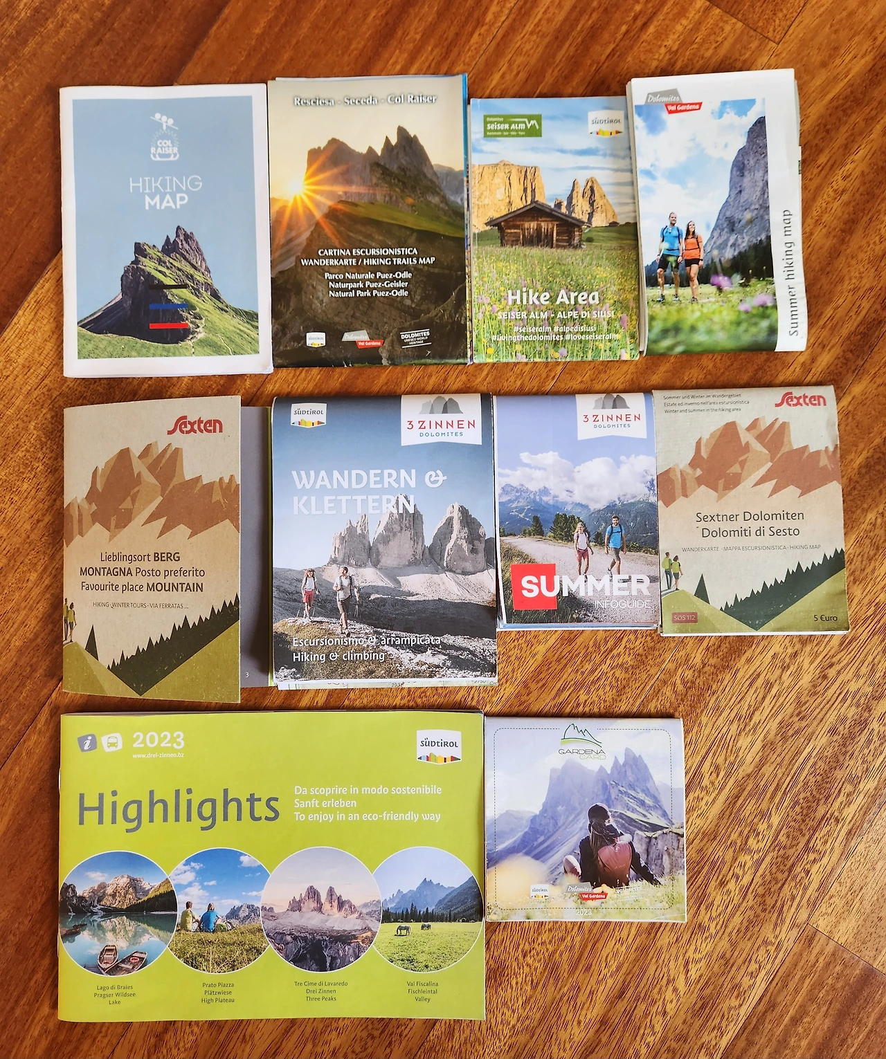Lonely planet : Walking in the Dolomites 등이 있는데 Walking in the Dolomites는 주로 1박 이상의 트래킹을 위한 트레일들이 실려있습니다.