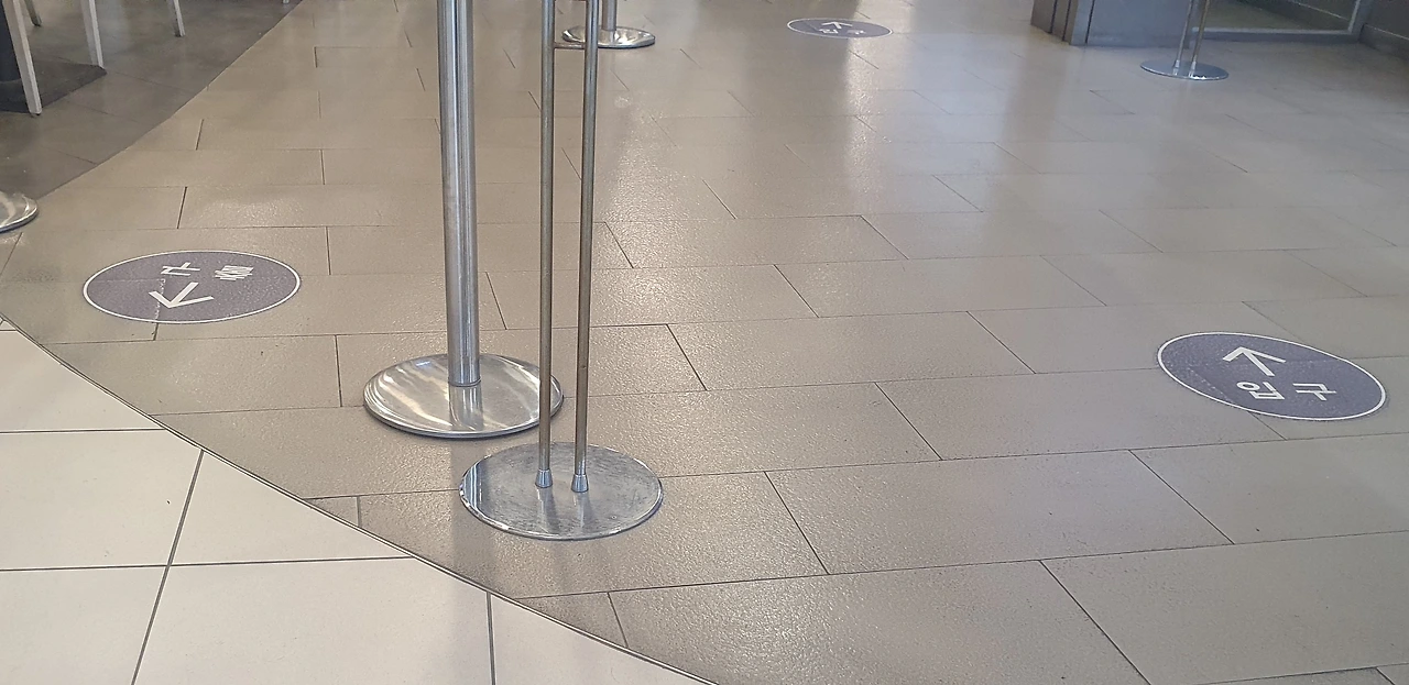 입구와 출구를 구분해두었고, 안전요원이 대기인원의 동선을 정리한다.