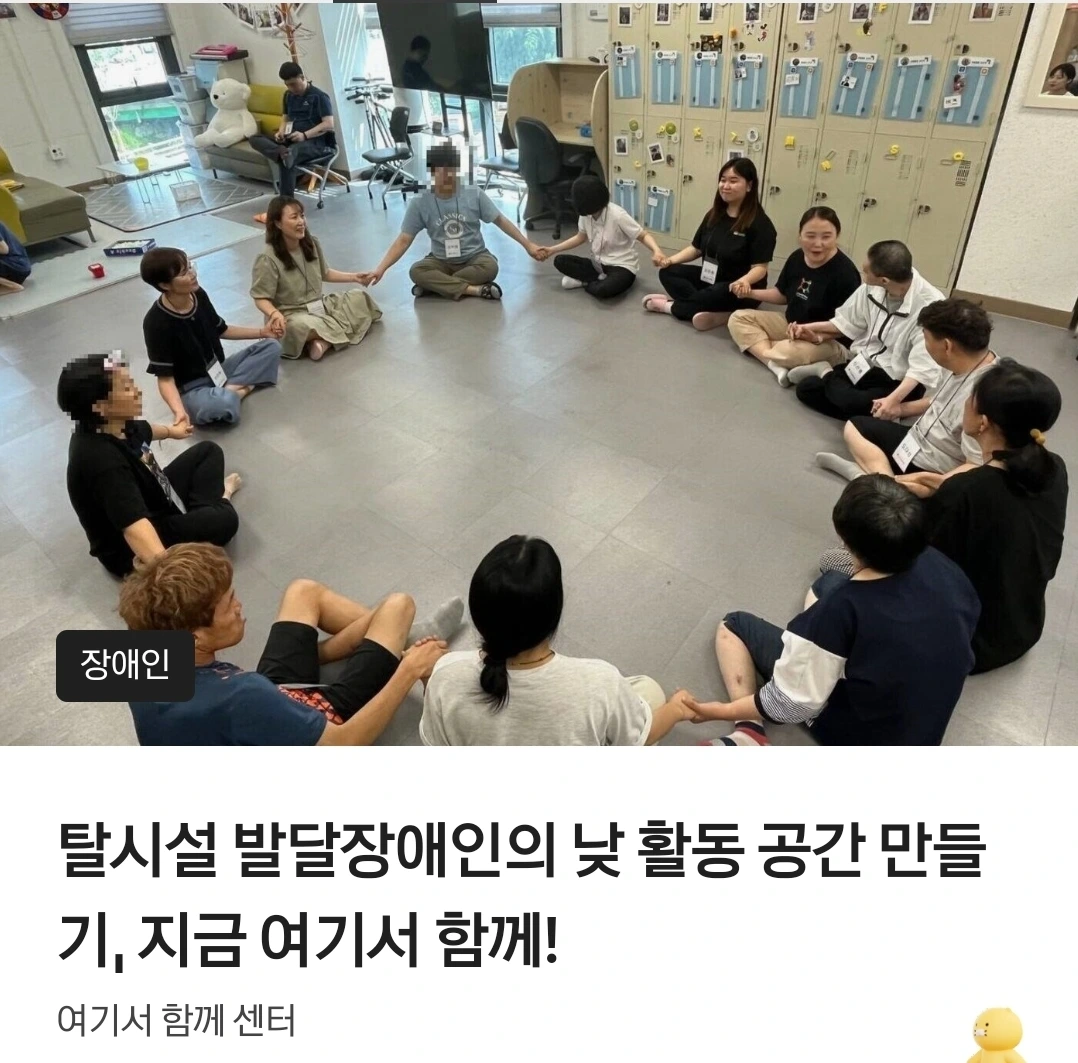 2024년 12월 대구시 활동지원서비스 추가지원이 종료됨에 따라, 참여자분들은 하루 12시간~13시간의 활동지원서비스를 받을 수 없게 되어 생존권이 위협받는 상황이 초래 되었습니다. 이에 2025년 1월부터 지원 공백을 최소화하고, 지역사회에서 나답게 살아가기 위한 새로운 발걸음을 여기서함께센터에서 시작하고자 합니다.