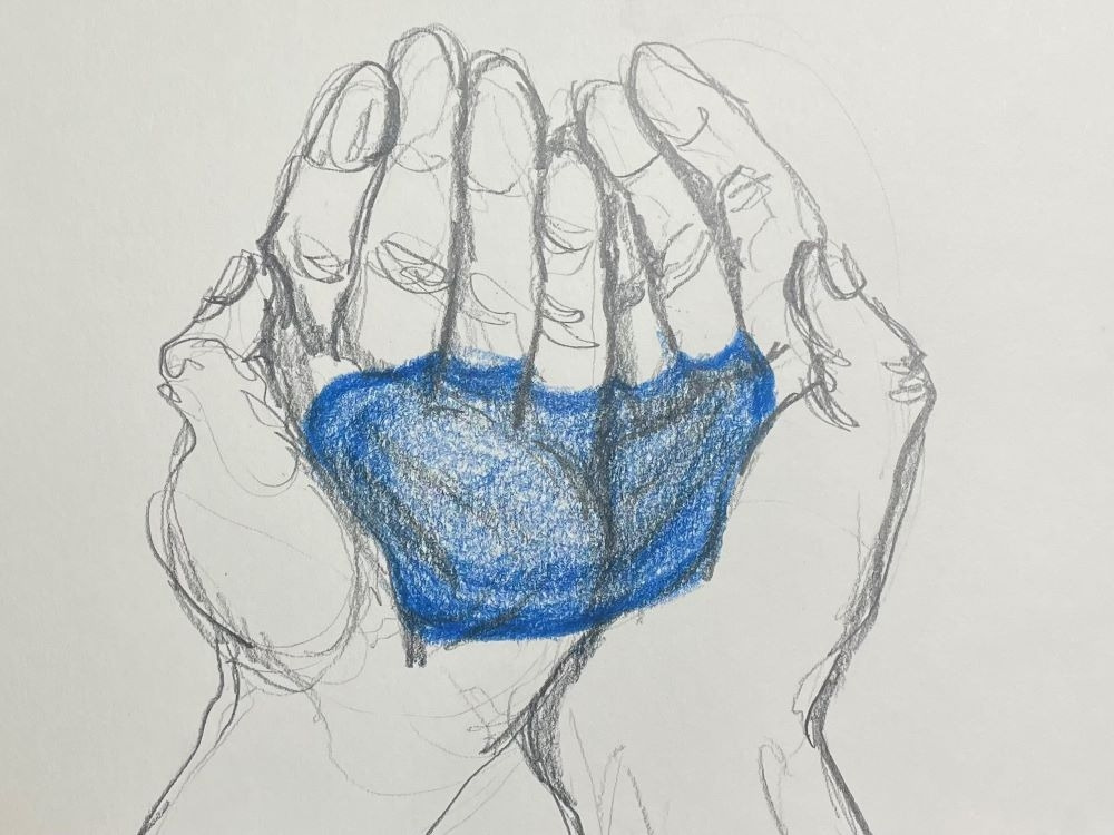 ▲양손을 모은 곳에 파란색 물이 고여 있다. ⓒ김소하 작가