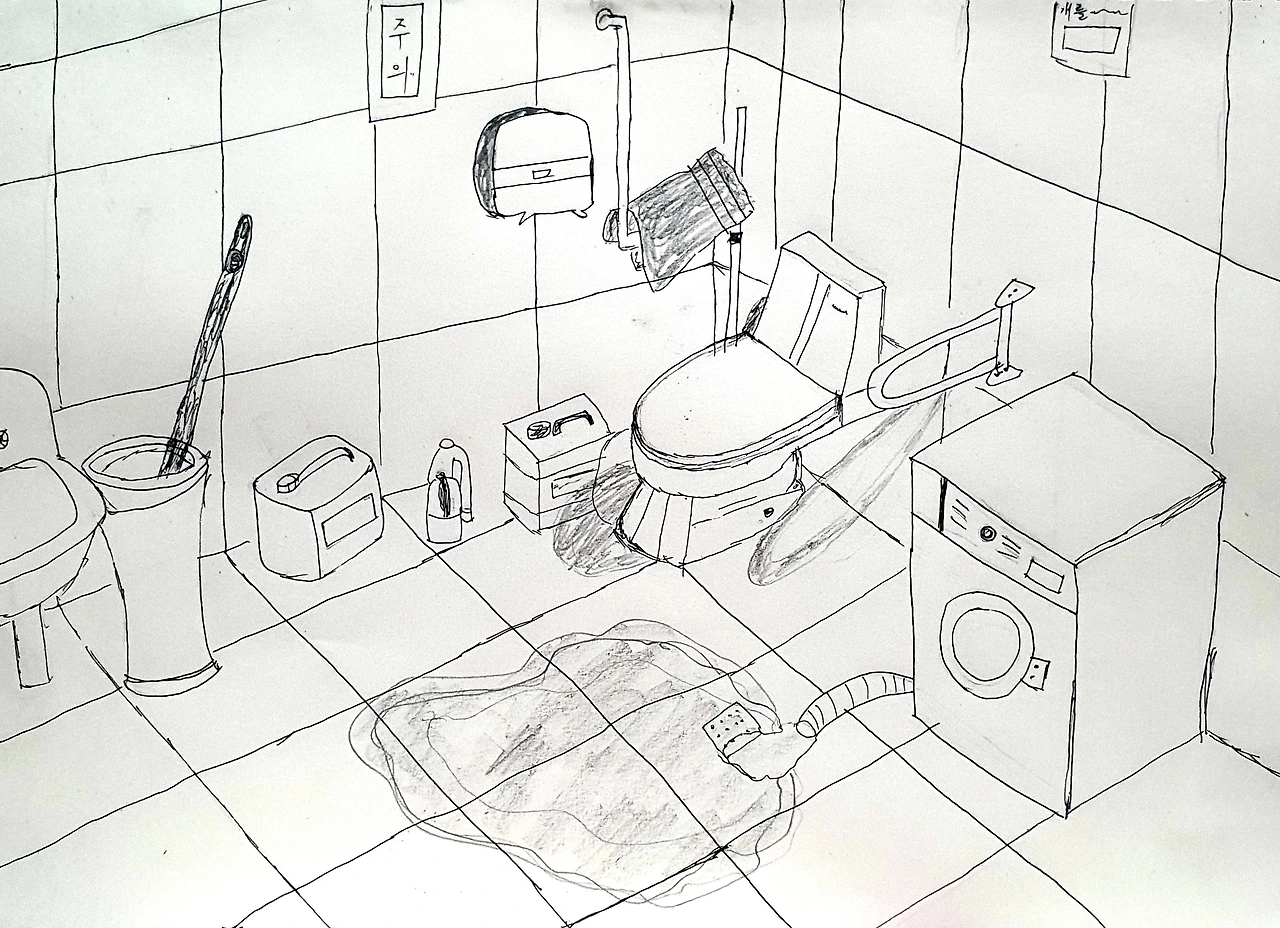 그런데 장애인화장실에 청소용품, 세탁기, 쓰레기통 등으로 인해 들어갈 수 조차 없다.