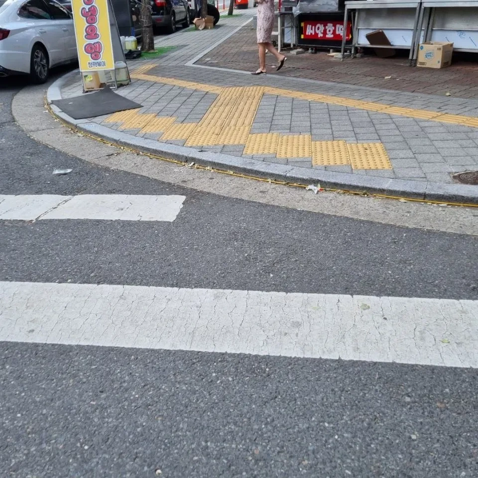 대구 북구 학정로 422에 소재한 롯데시네마 인근 사거리인데 턱으로 인해 장애인들은 횡단보도를 건널 수 없습니다.
