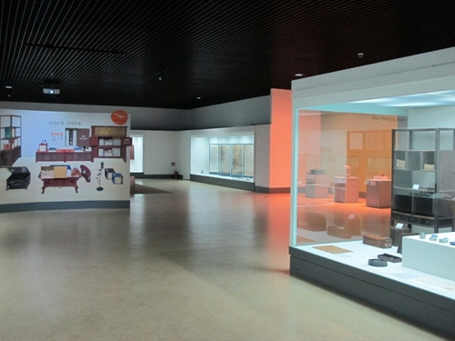 엘리베이터에서 내려 왼쪽으로는 대전의 전통 직물 전시실과 전시실을 나와 오른쪽으로는 대전 역사학 전시실로 구분되어 있습니다.