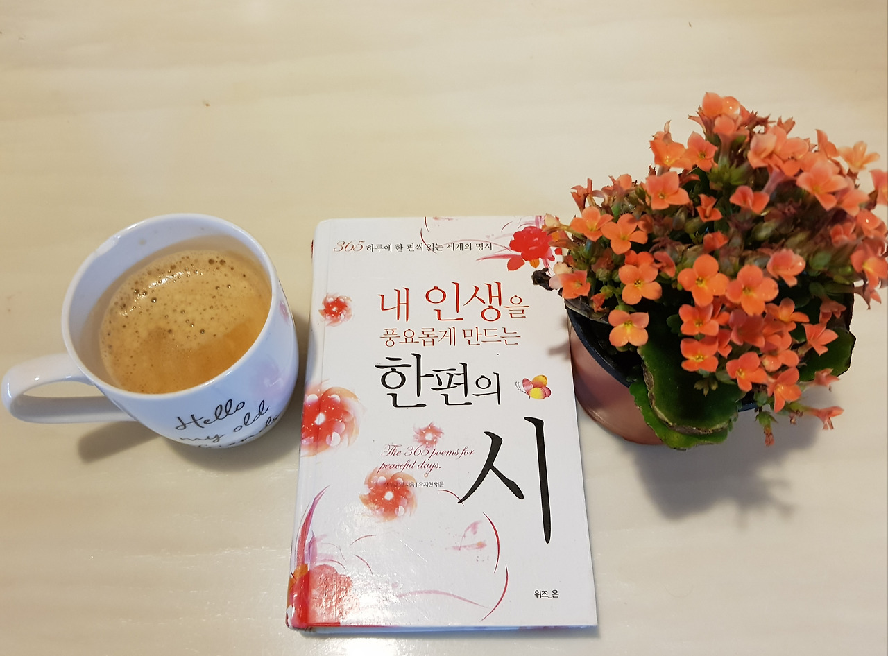 첫 장을 펴면 "너무 바쁘게 살아가고 있진 않나요? 시는 나무 의자 같은 거예요, 사색과 성찰의 기회를 주는 하루에 한편, 주옥같은 세계의 명시를 읽는다는 것은 당신의 삶에 밝고 향기로운 등불을 다는 일과 같아요. 한 권의 시집, 한 권의 행복을...." 이라며 책이 말을 걸어온다. 책이 나보다 먼저 감성이 폭발해 버렸다. 부담스럽다. 초면인데 친근한척하는 책을 보니 낯을 가리며 다시 덮고 싶어 진다.